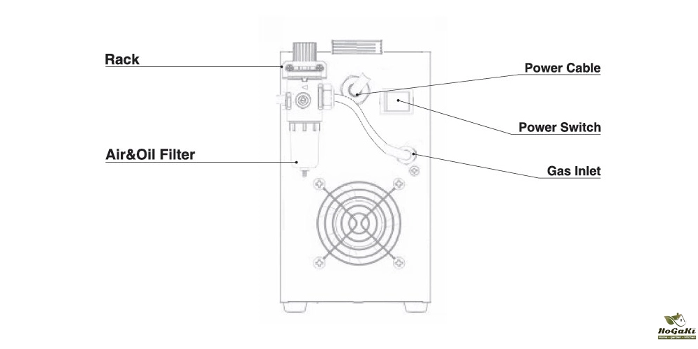 4. Turn on the power switch. The cooling fan should start to operate and the LED should come on. The front panel should show the machine's electrical current volume, and you can adjust it by turning the nob below the display.
