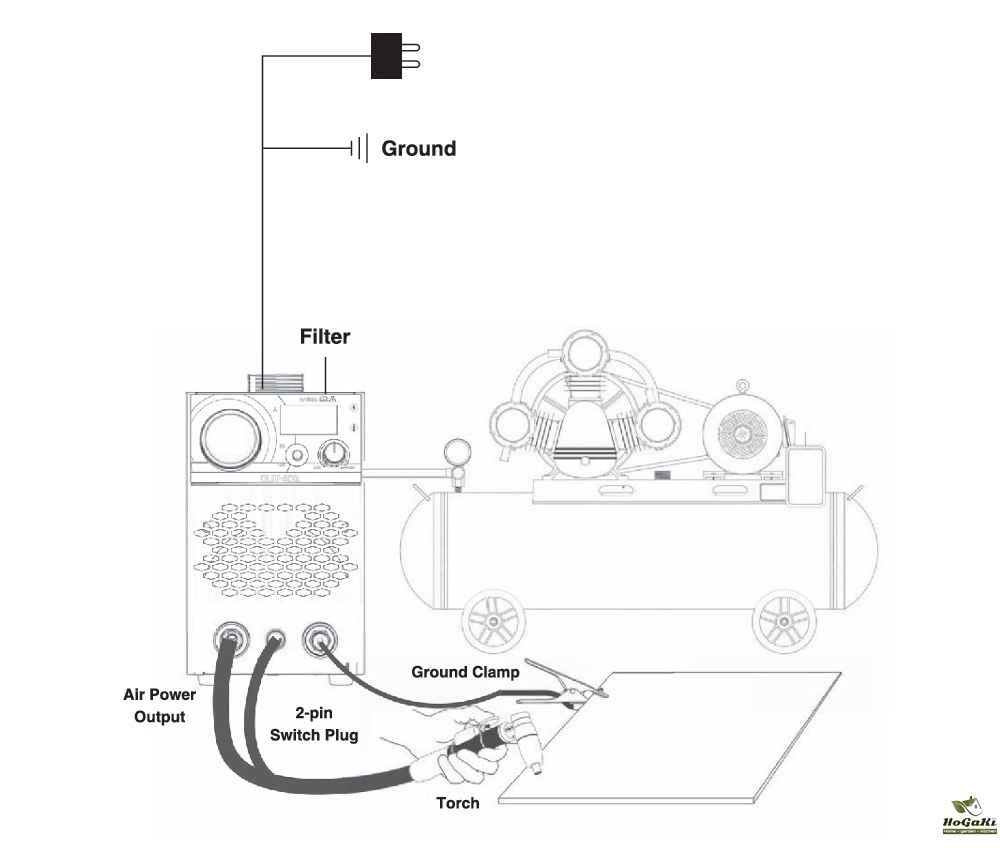 3. Connect the ground clamp to your work piece. Caution: Rust or paint on the work piece could create an open circuit; therefore, the contact point should be cleaned thoroughly to ensure a good connection between clamp and work piece.