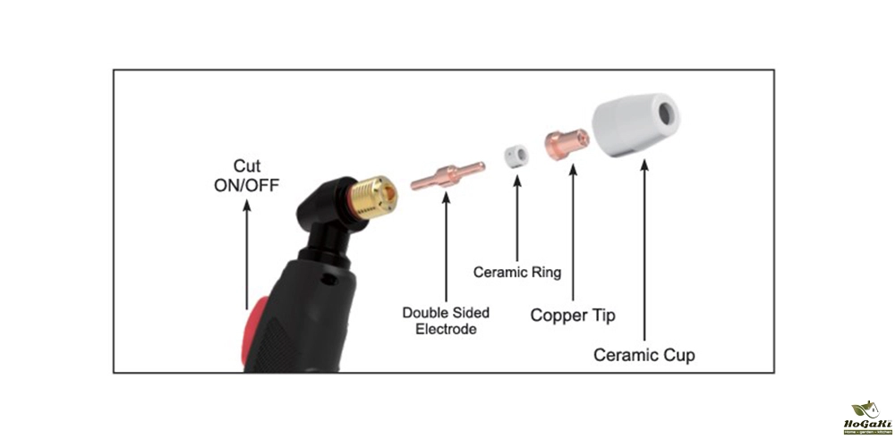 6. Bring the torch tip into direct contact with your work piece edge or, for thicker cutting, over a pre-drilled pilot hole. Press the button on the torch to start cutting.