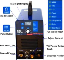 4. Turn on the power switch. The cooling fan should start to operate and the LED should come on. The front panel should show the machine's electrical current volume, and you can adjust it by turning the nob below the display.