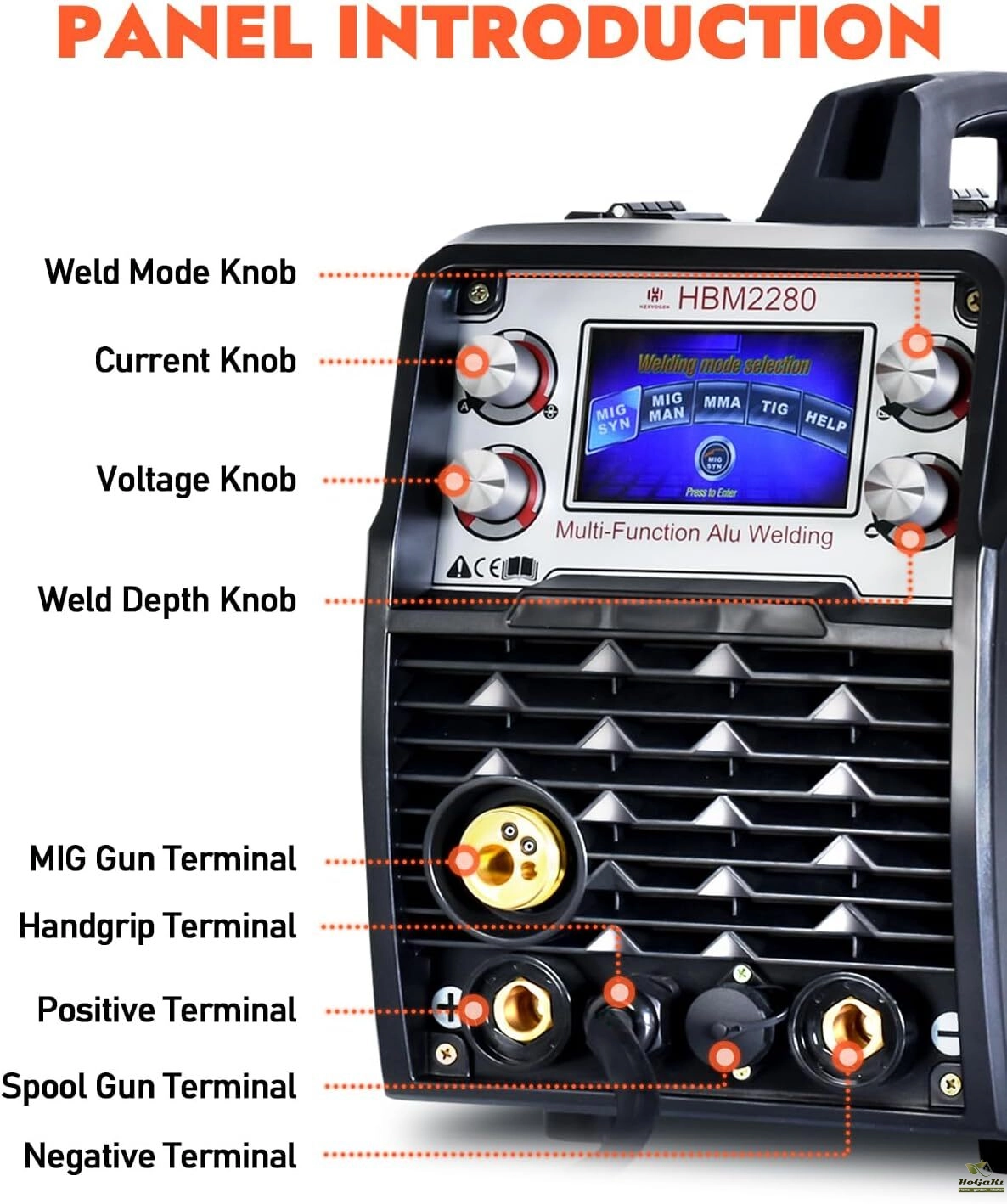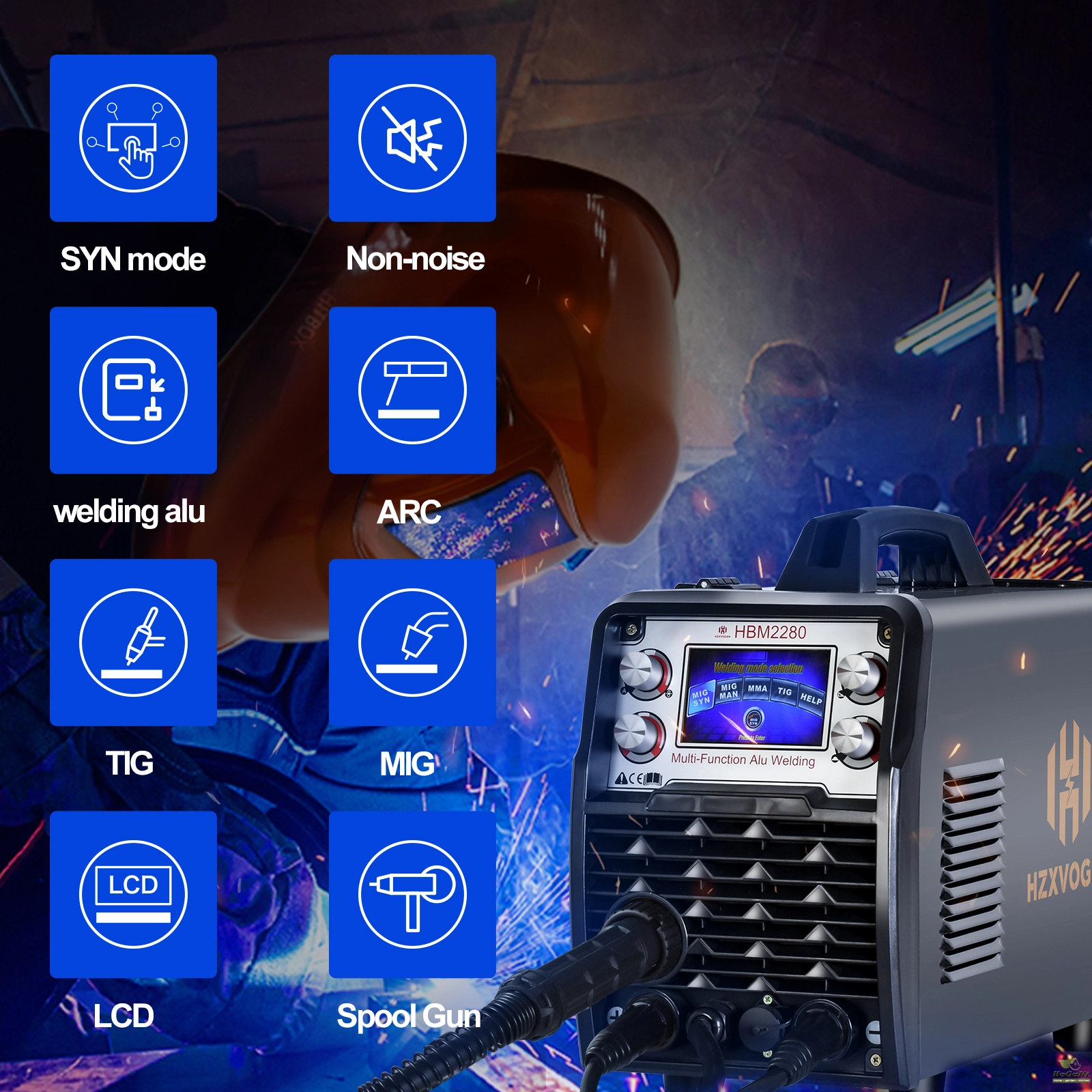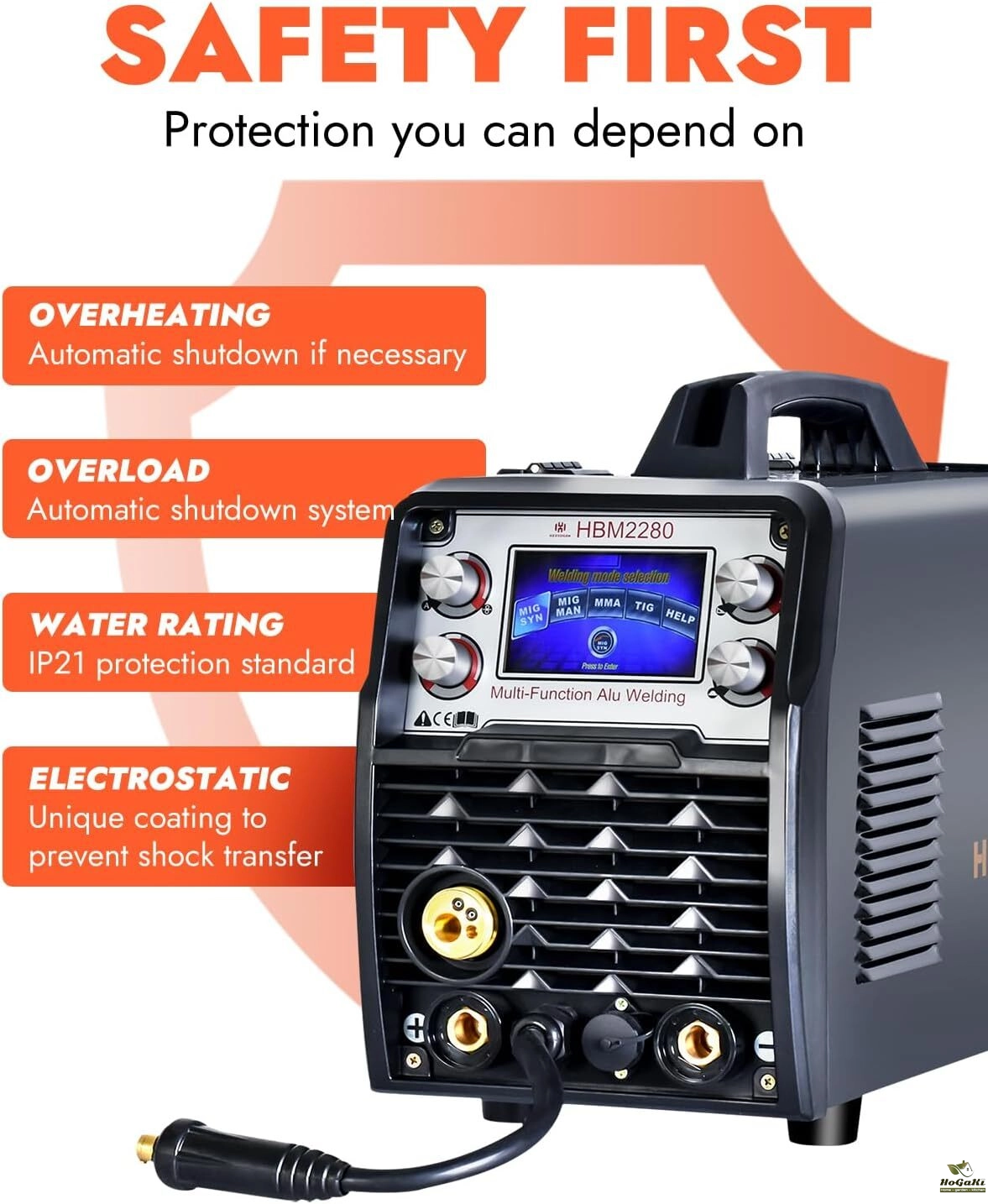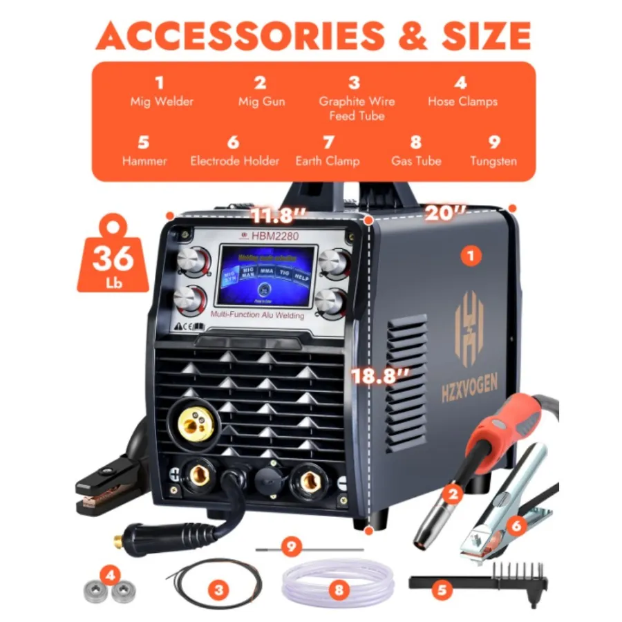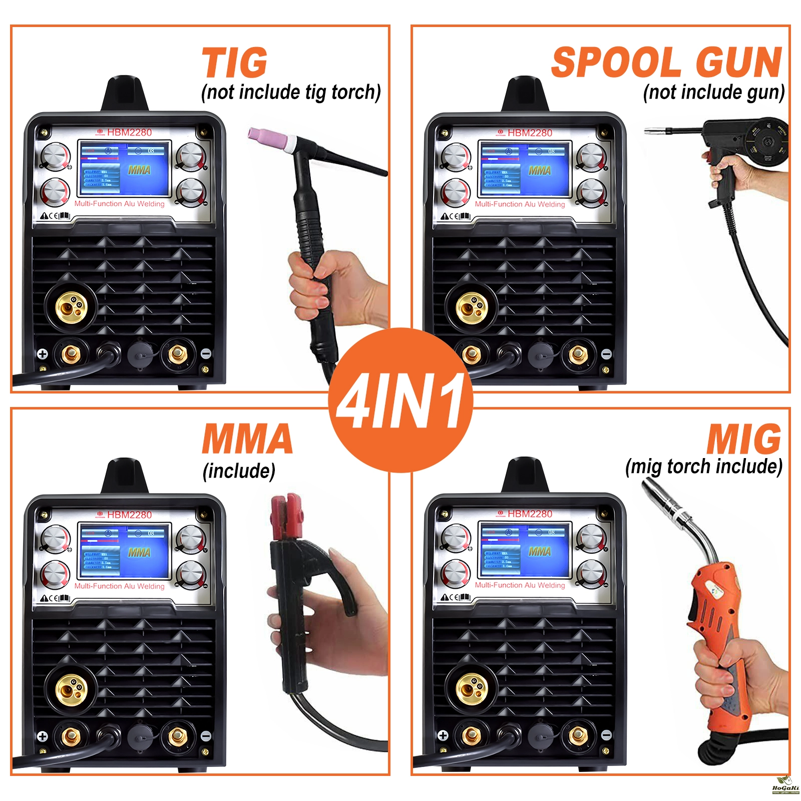 2.Can weld Aluminium - This welder can weld aluminium, iron, carbon steel, stainless steel, etc. MIG synergistic setting & MIG manual setting, Gasless Flux wire MIG Welds, stick welds, and Lift TIG welds. Dynamic control-set arc control to crisp or soft depending on your preference and application.