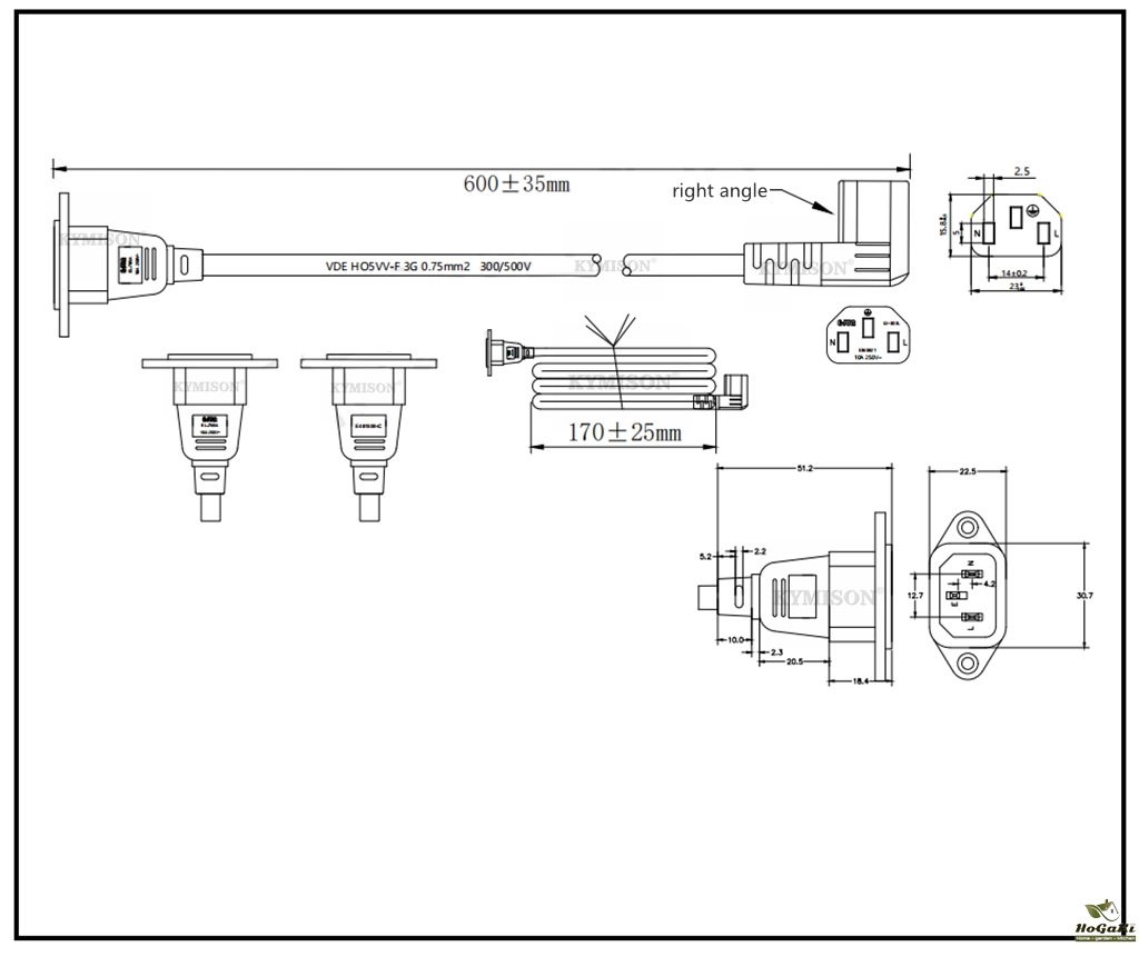 Wire Guage: 3G0.75mm Square ; H05VV-F
