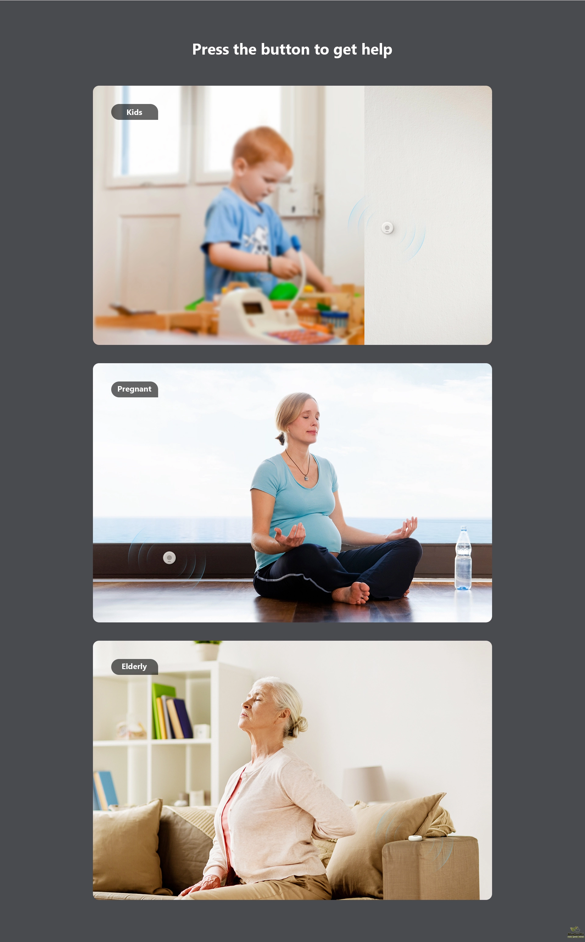When an emergency occurs, press the wireless switch to call for help through the gateway. The gateway alarms