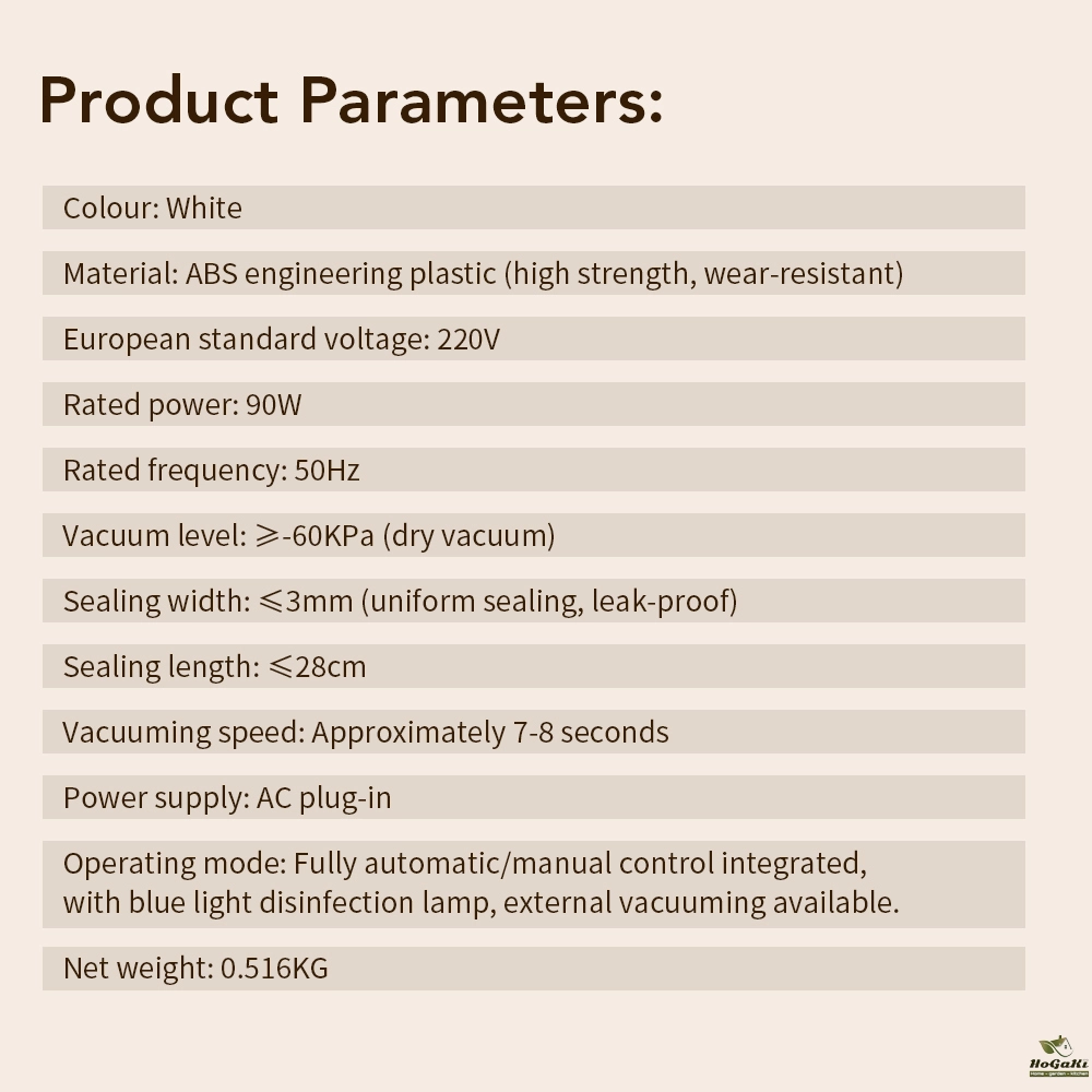 2.Equipped with a robust 90W motor delivering 60kpa of suction power, this food-sealed packaging tool quickly creates a vacuum environment with minimal wait time and can seal multiple packages in one go, enhancing efficiency.