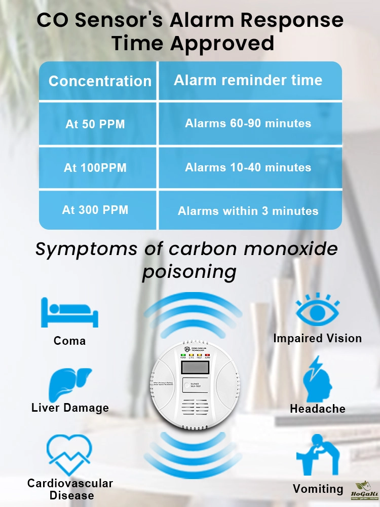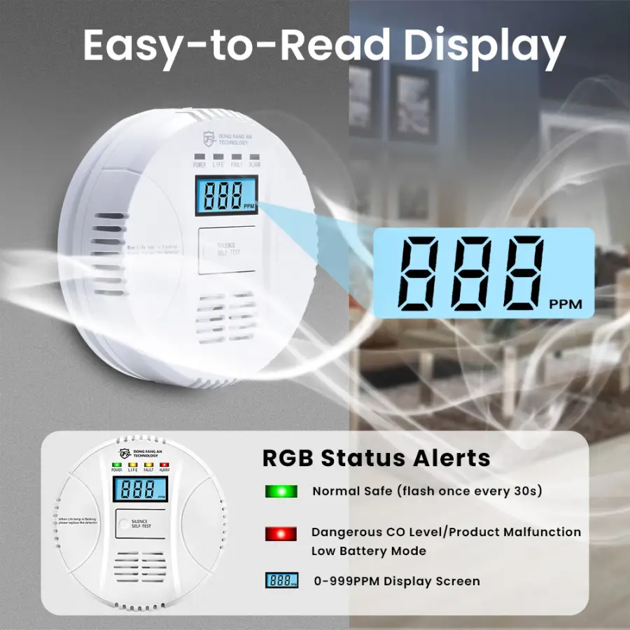 This carbon monoxide detector meets ETL standards and features a built-in advanced electrochemical sensor that detects dangerous levels of CO more accurately and responds faster. In case of danger, the carbon monoxide detector provides an alarm of less than 85 dB at 10 meters, providing maximum protection.