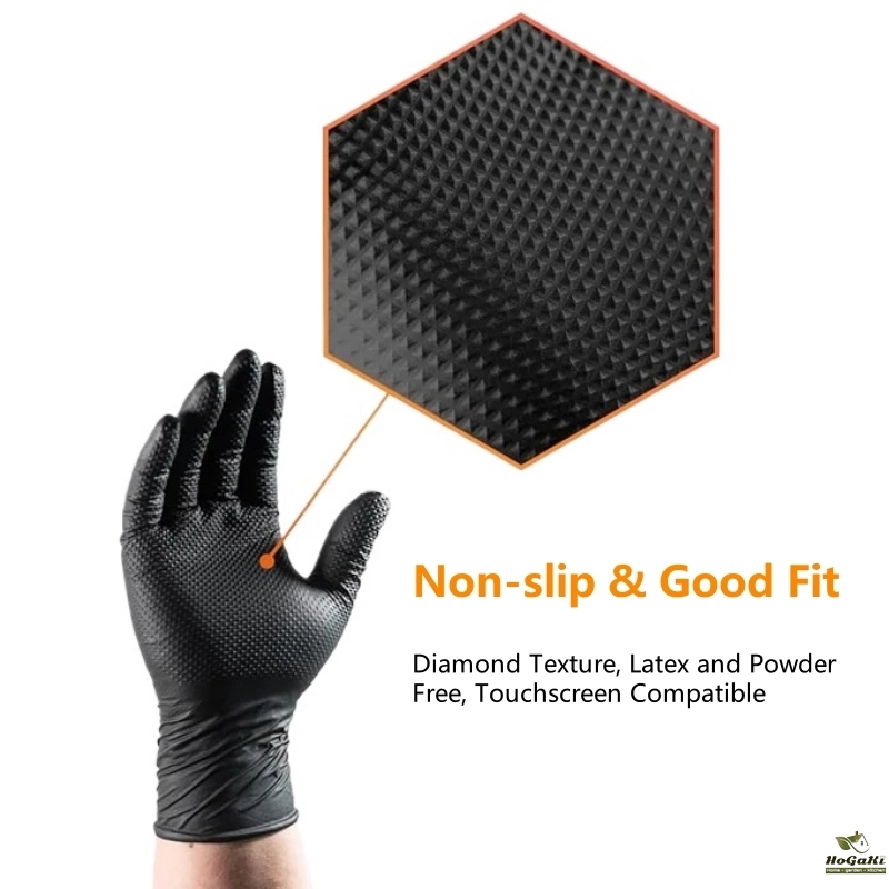 Industrial Black Nitrile Gloves 8mil Heavy Duty Disposable Gloves with Diamond Textured Latex Free Mechanic Tattoo Auto Gloves
