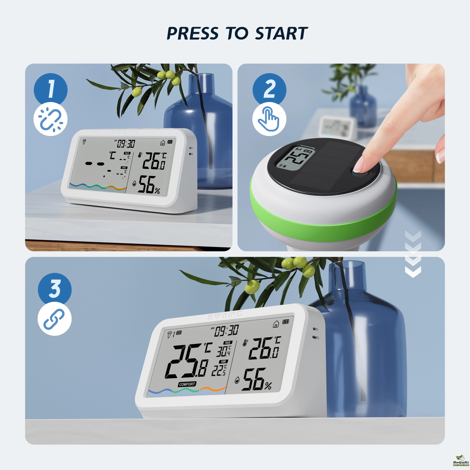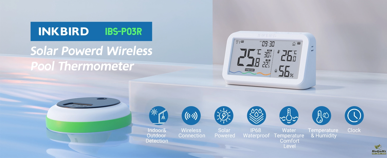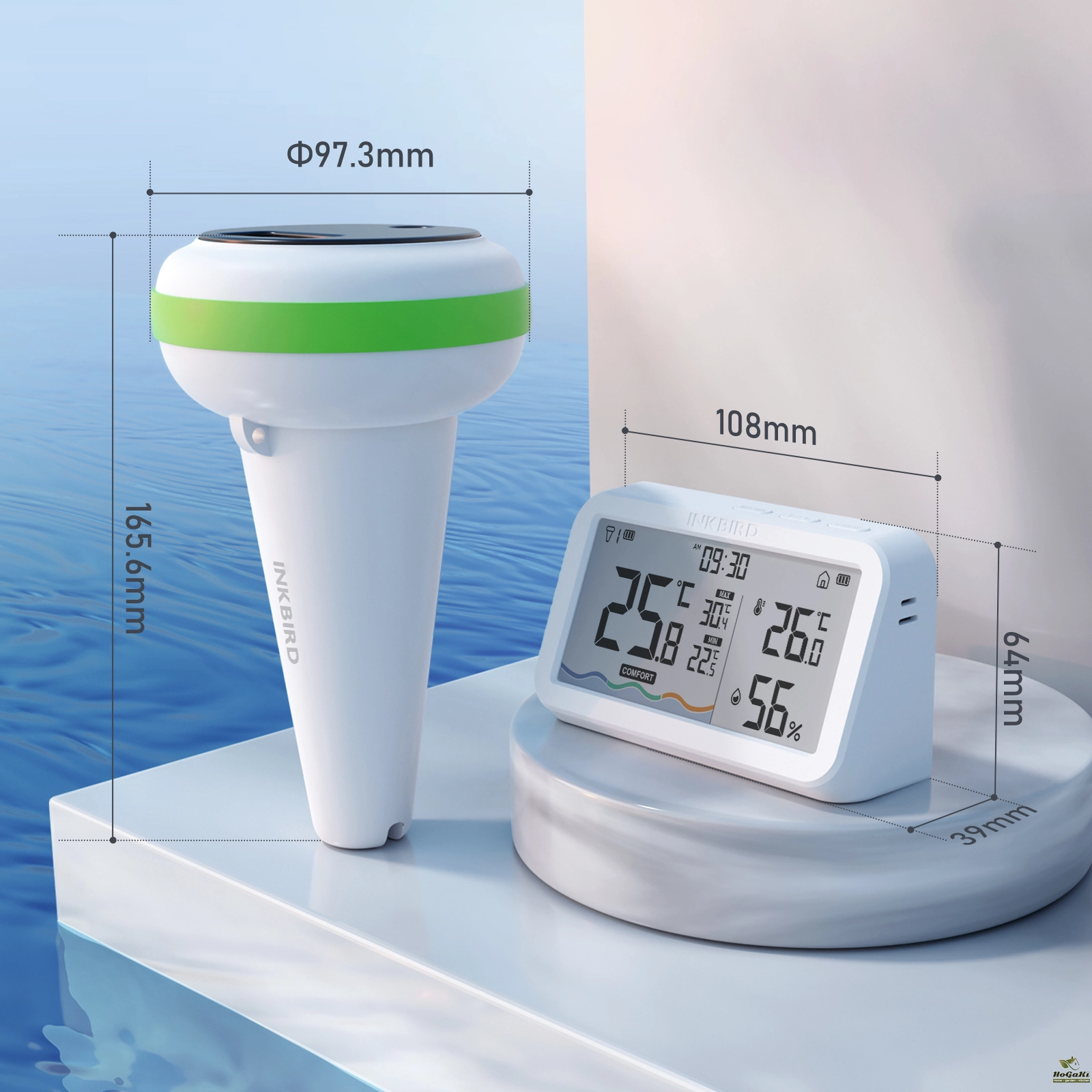 The INKBIRD solar-powered wireless pool thermometer features a high-precision sensor and an IP68 waterproof construction. It supports solar power recharging, eliminating the need for frequent battery replacements and ensuring water resistance, which frees you from any worries and is environmentally friendly. The indoor monitor supports communication up to 300 meters, displaying both the pool temperature and indoor temperature and humidity for easy viewing.