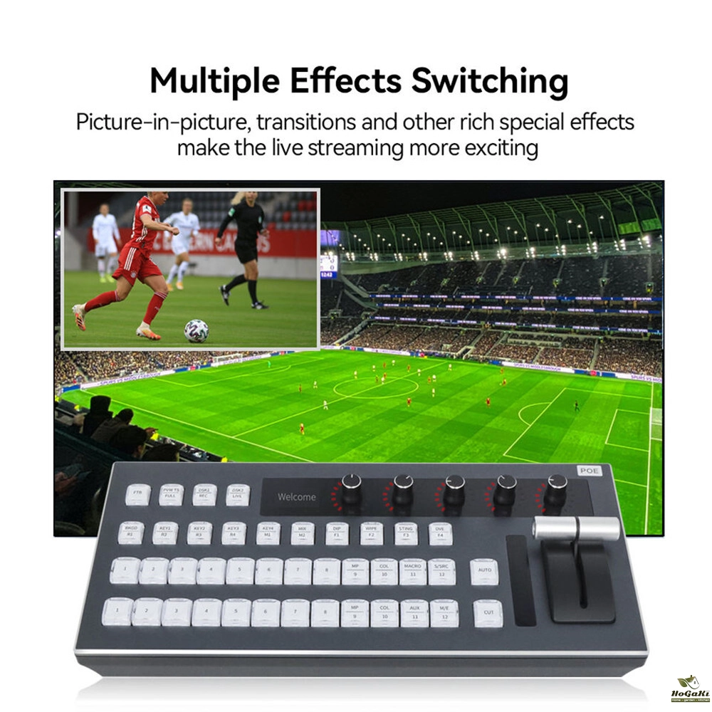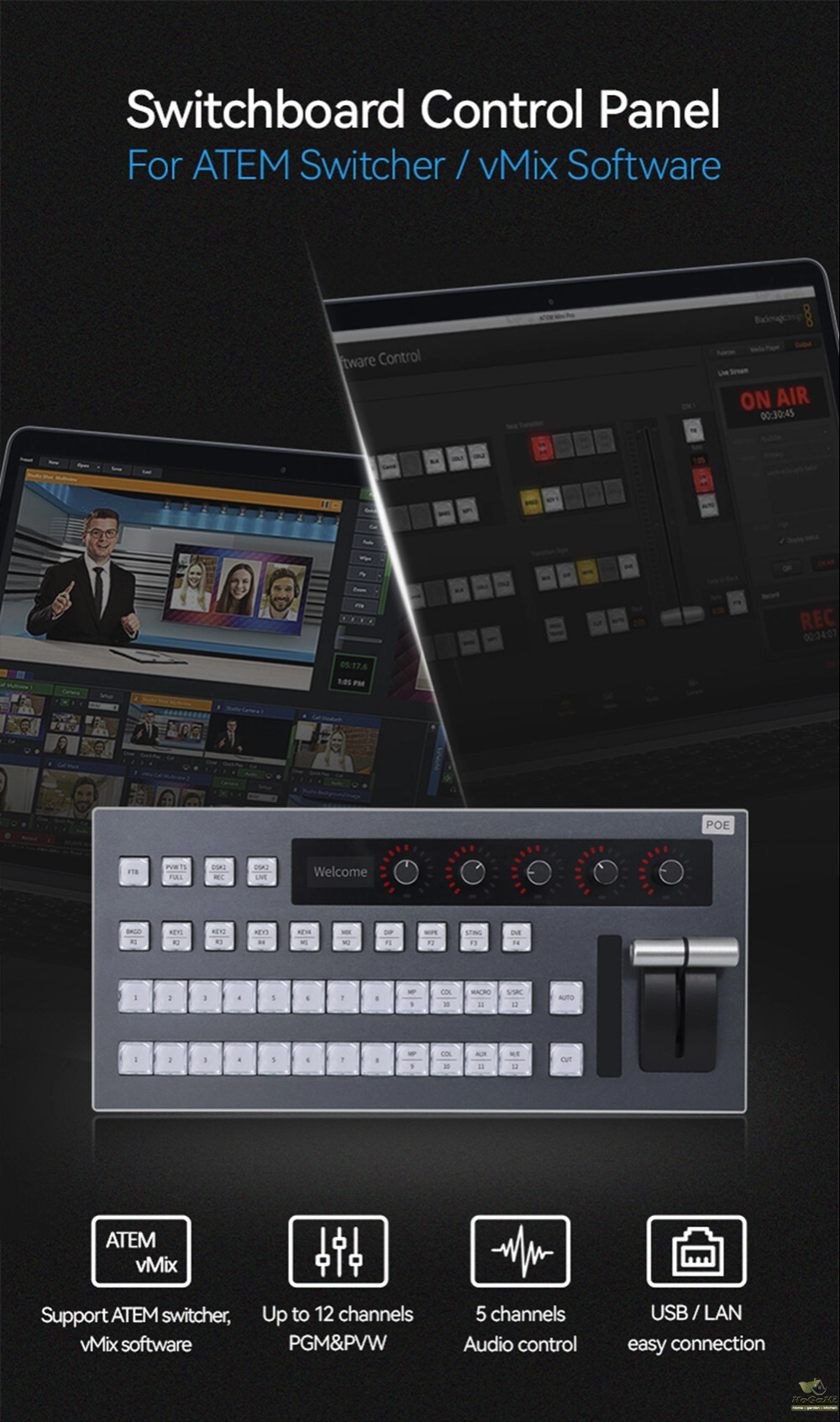 In addition to supporting ATEM series devices, it also supports MIDI protocol,compatible with Vmix and other various live broadcast software.Complete the control of functions such as directing, transitions, tuning, one-key black screen, etc.,multi-purpose machine is more worry-free.