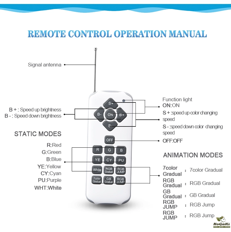 (Only RGB need work with AC/DC12V type come with the Remote Controller, Without Battery)