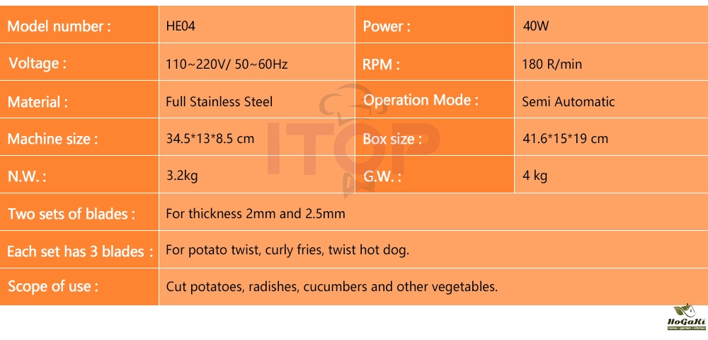 Scope of use: cut potatoes, radishes, cucumbers and other vegetables.
