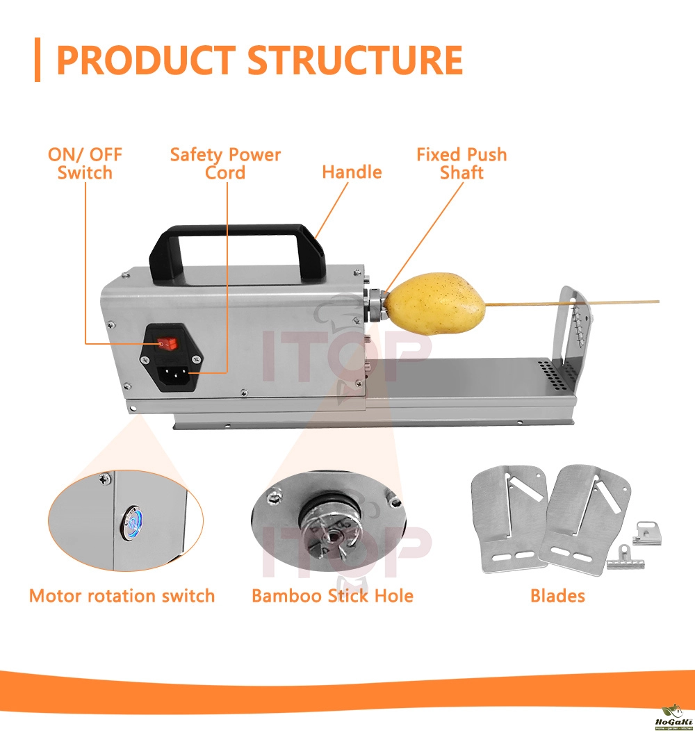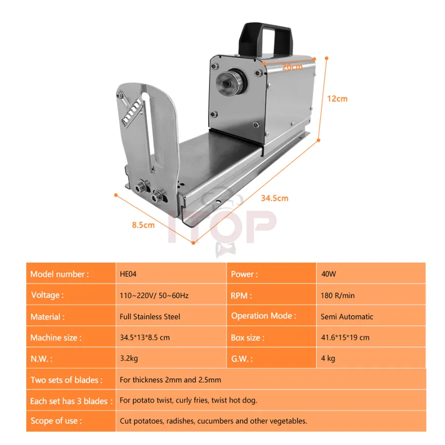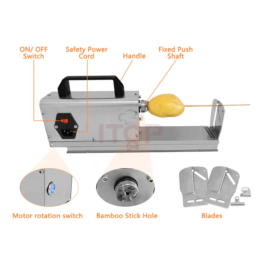 Electric Potato Curly Fries Cutting Machine Commcercial Potato Cutting Machine AC110-240V 30W