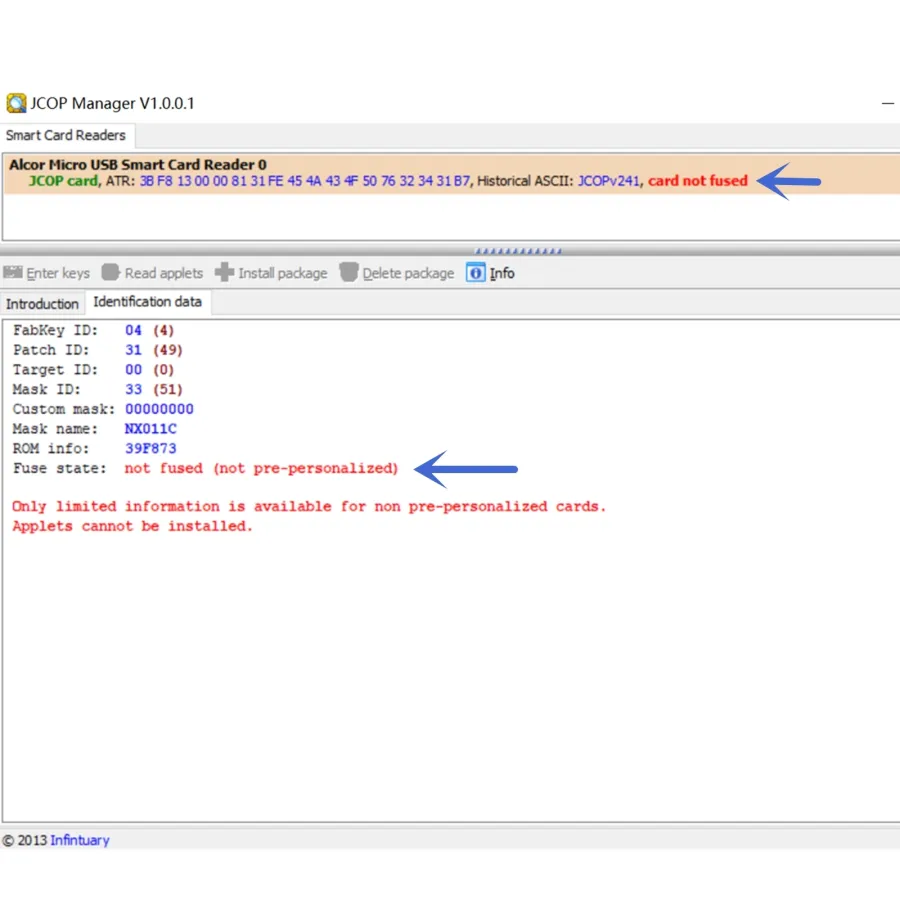 When initilizing cards, it can be run in GP V2.1.1, V2.2.1 with Jcop tools to finish the initilization.
