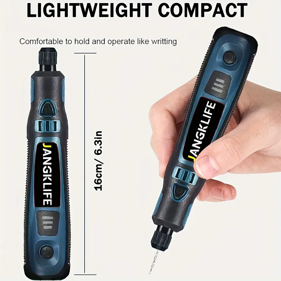 1. Compact and portable, easy to operate and carry, and can be flexibly used in various scenarios.2.A variety of grinding heads are available to adapt to different grinding needs and materials.3.The rotational speed can be adjusted to meet the grinding tasks with different degrees of fineness.4.Low-noise operation to reduce interference during work.5.Both professional craftsmen and amateur enthusiasts can easily get started, with a wide range of applications.6.Rich accessory choices allow users to customize according to specific needs.7.Its portability enables grinding operations to be carried out anytime and anywhere.8.Durable and reliable, it is an ideal tool for long-term use.
