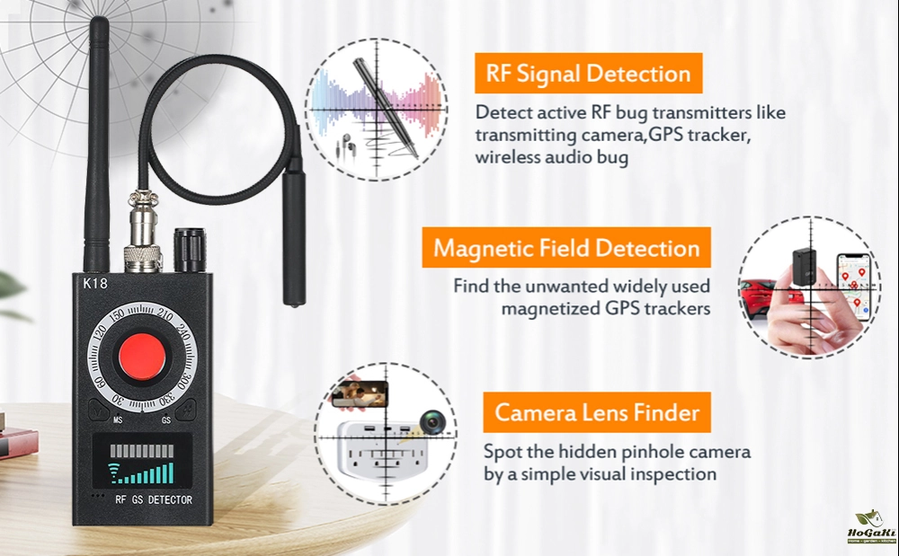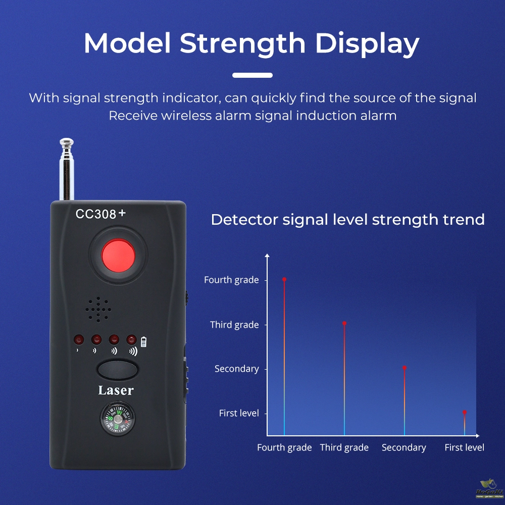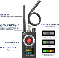Using advanced chips,The improved one is easy to operate and portable. Stronger anti-jamming and wider range of detection frequency.this product has modes of laser scanning, RF wireless signal detection, magnetic field signal detection and so on. With high sensitivity and strong anti-interference ability, it can accurately detect various eavesdroppers, GPS locators, trackers, 1.2G~6.5G wireless camera, 2G/3G/4G signal from SIM card bug and other equipment
