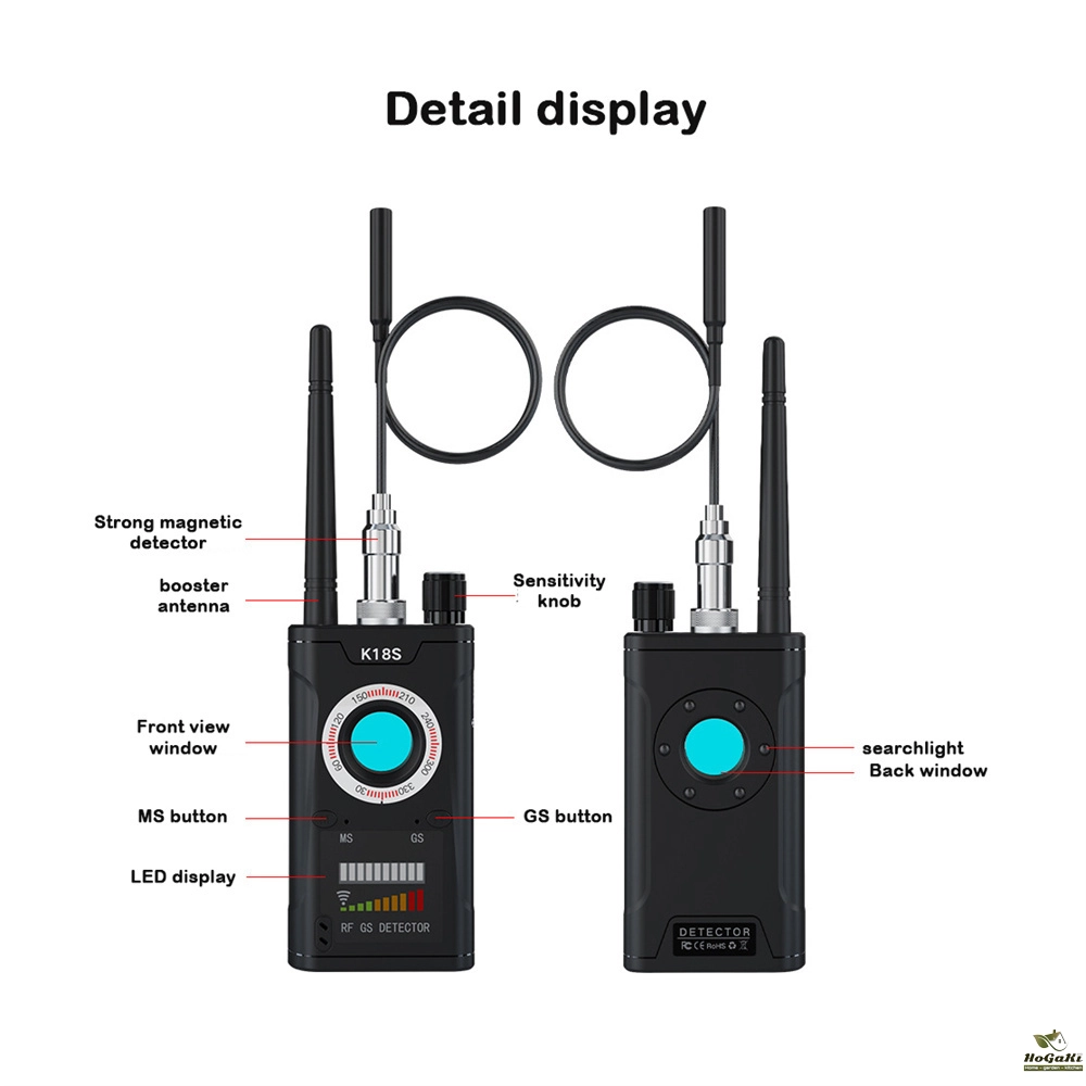 3.Detectable RF frequencies from 1-12000 (MHz), all FR frequencies including GSM, WIFI BT, FM, VHF, UHF, 900/1200/2400 wireless audio and video transmission frequencies.