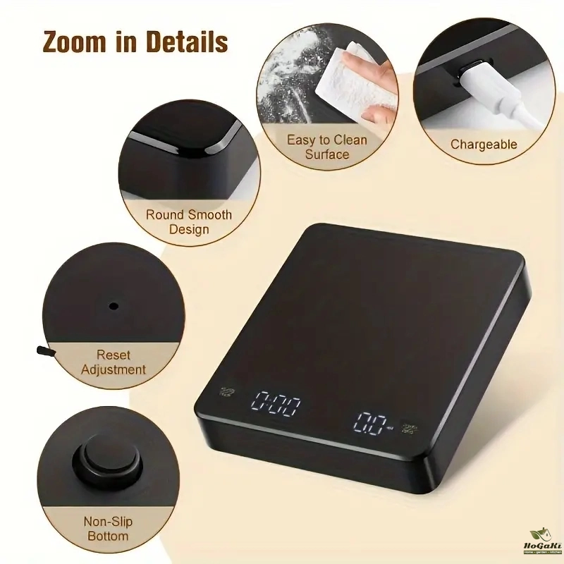 *The coffee scale has a built-in high-precision load cell: the accuracy is 0.1g, and the maximum measurement value is 3KG. Stable and accurate coffee scales ensure high quality and optimal taste, ensuring consistency from cup to cup.