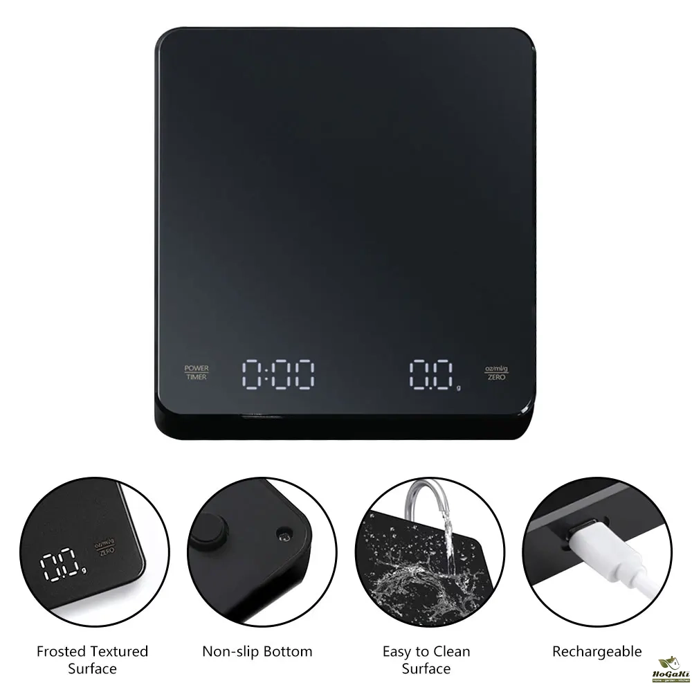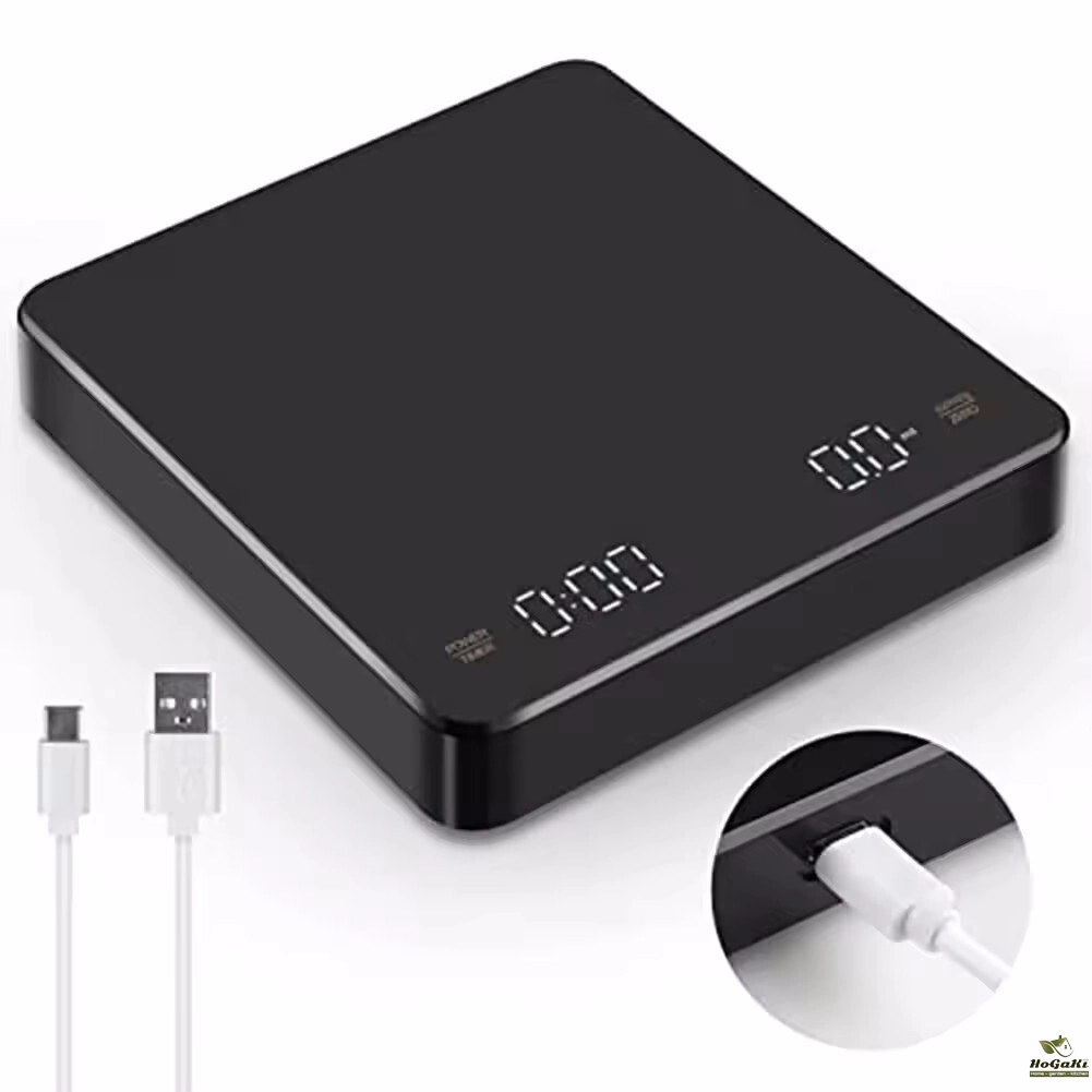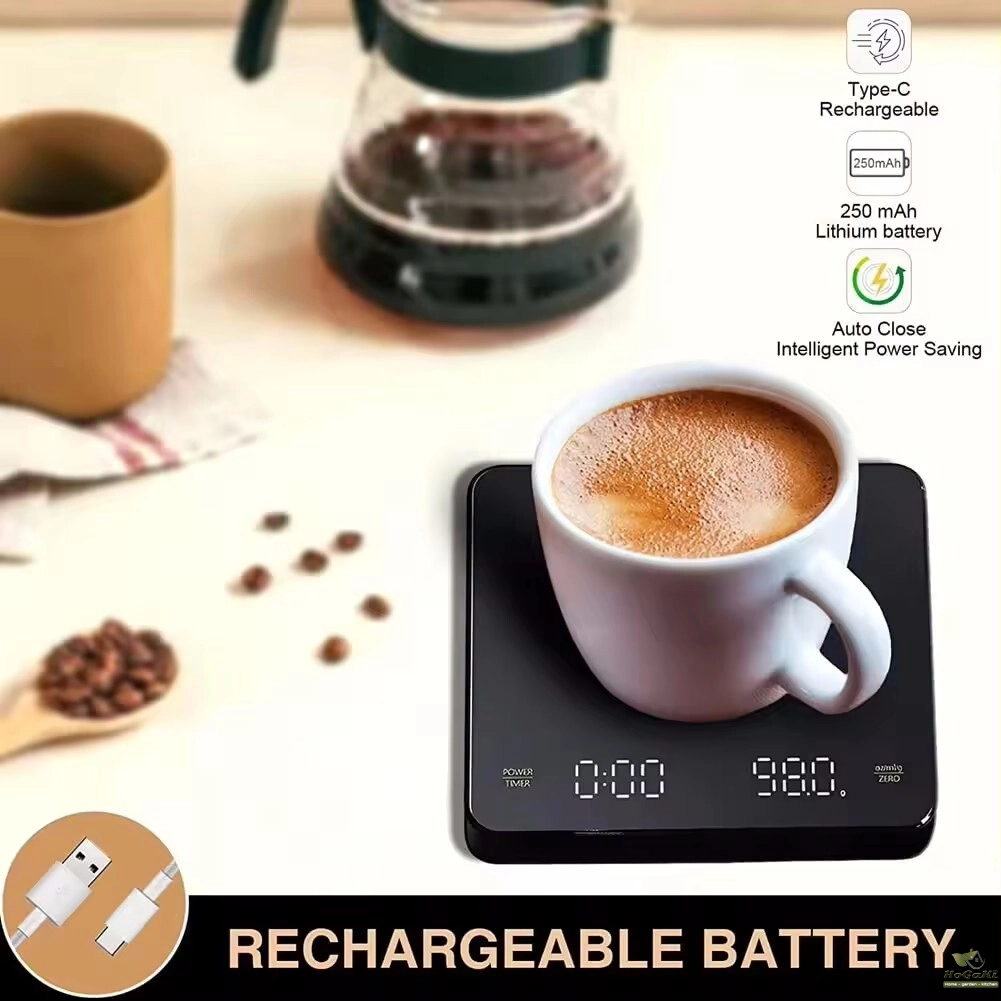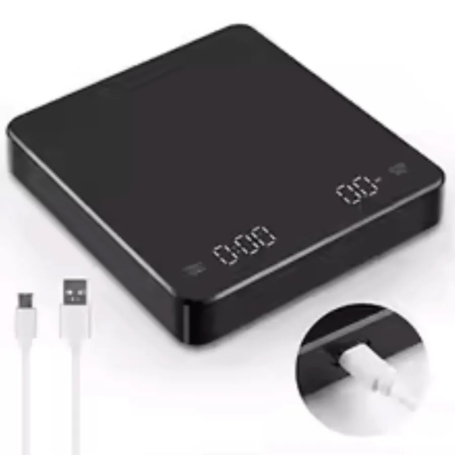 KC2 Digital Rechargeable Coffee Scale with Timer LED Screen Espresso USB 0.1g to 3kg High Accuracy Measuring Kitchen Scale