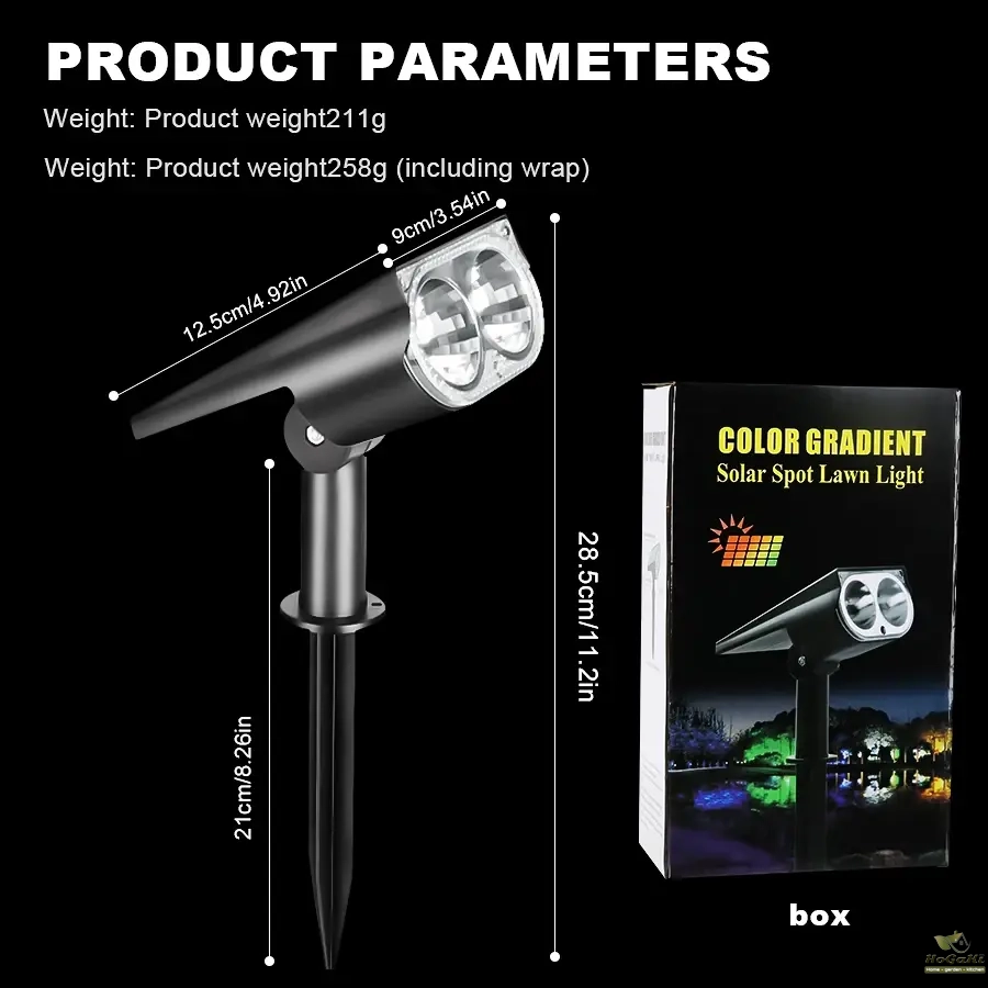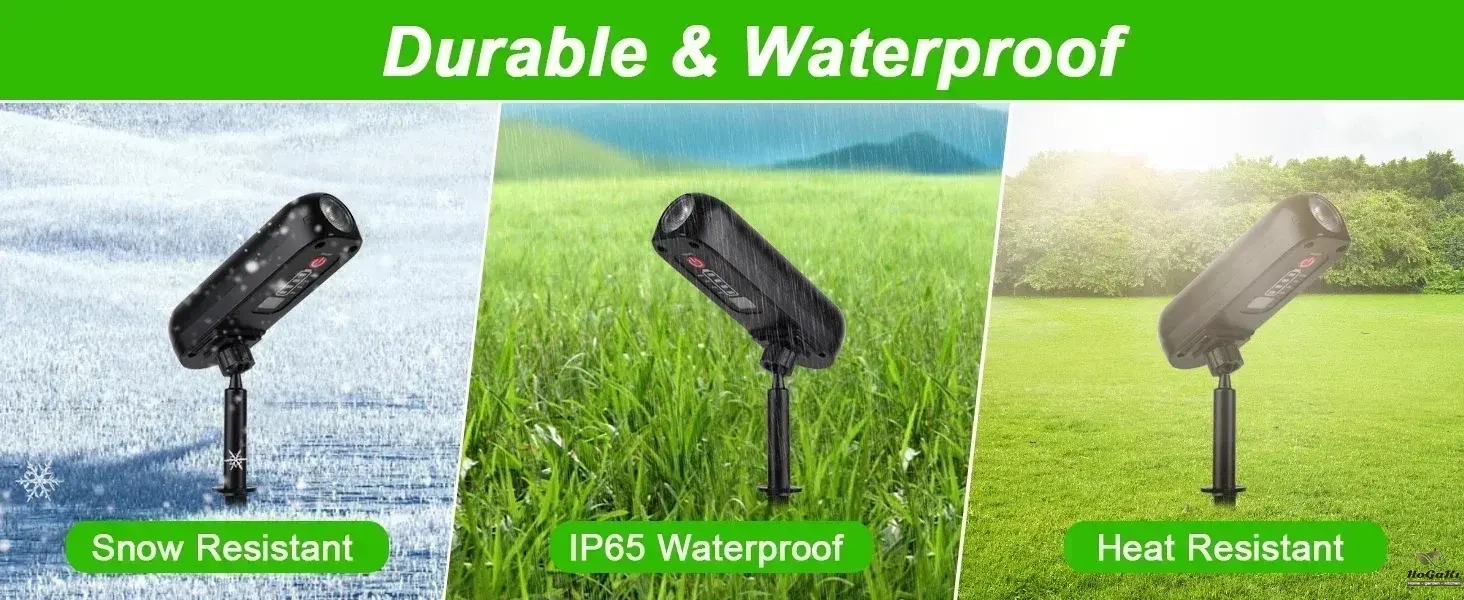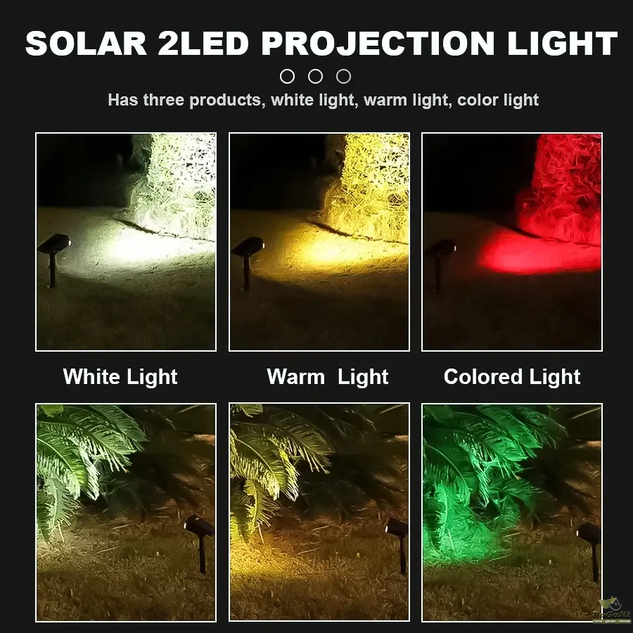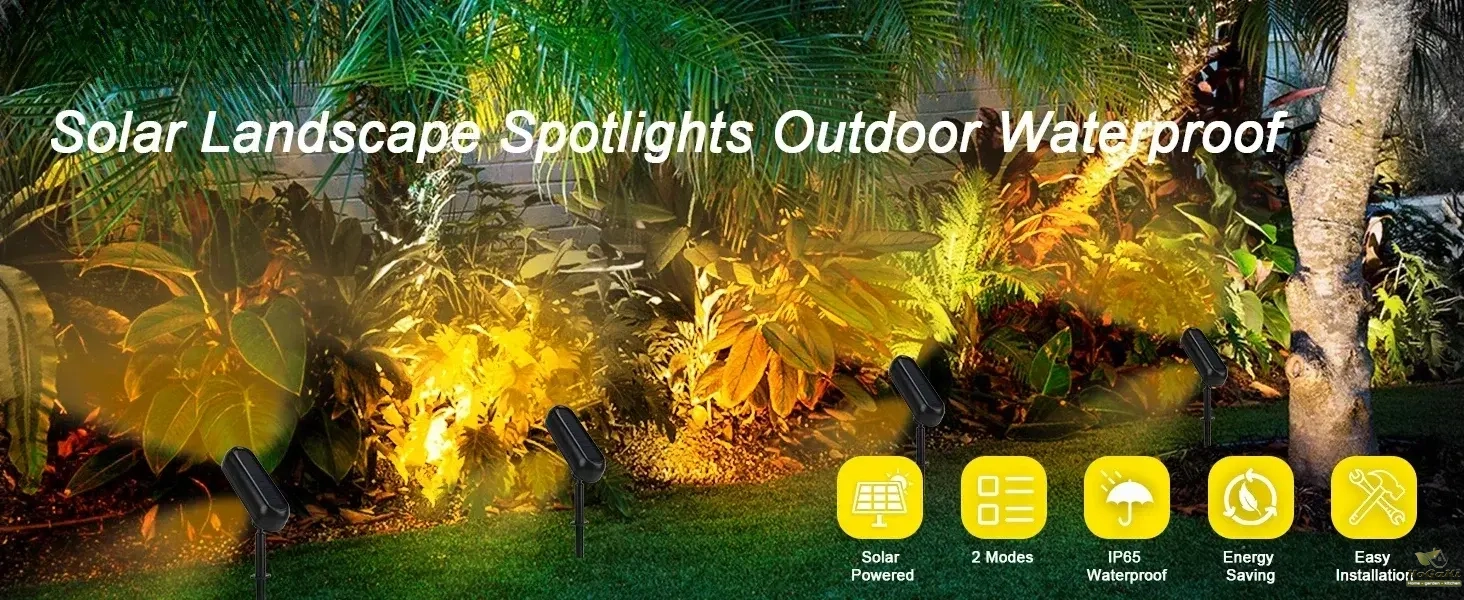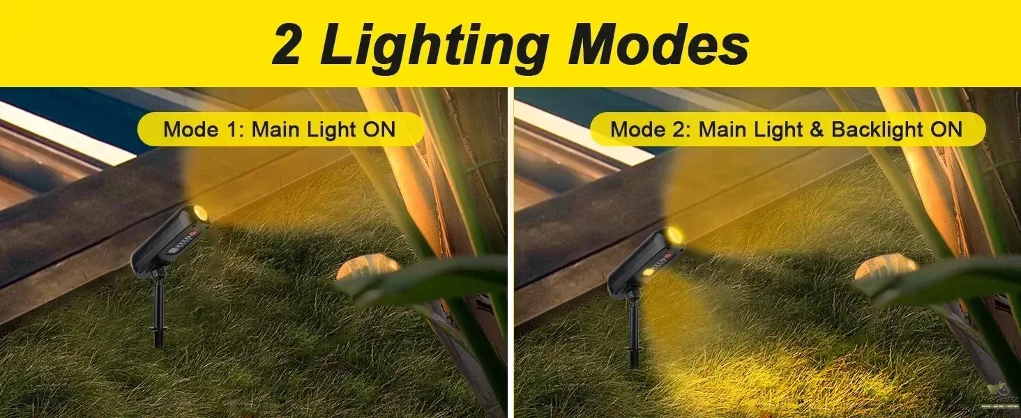 【Unique Solar Spotlight】Powered by high quality 5V solar panel, solar powered design, and our solar spotlights have 2 illuminants(Main Light & Backlight) to create a larger area which make a more attractive setting for your garden.