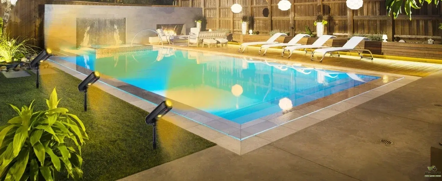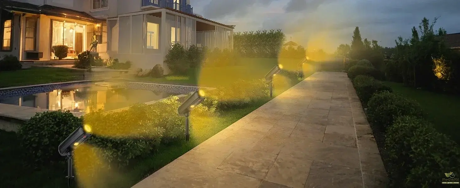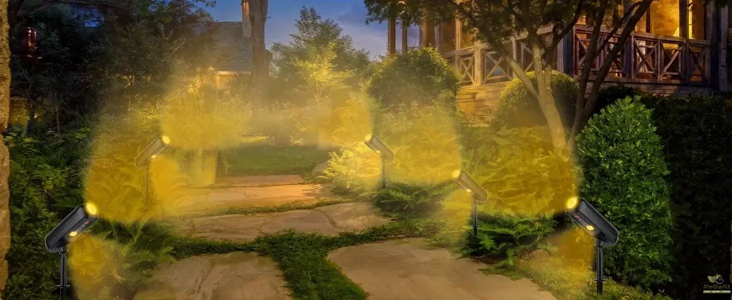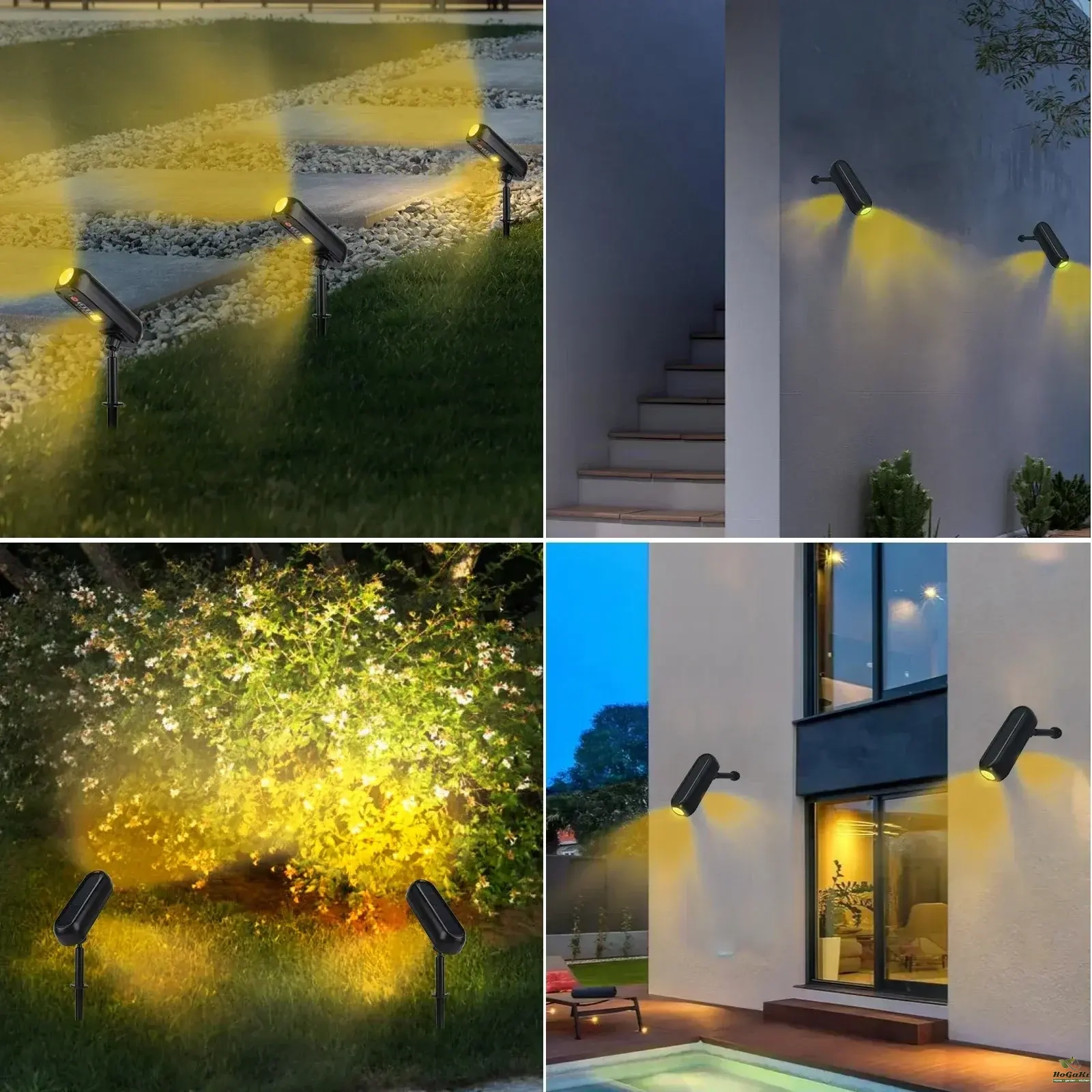 【Widely Application】The solar spotlights are perfect for illuminating your garage, yard, proch, garden, trees, patio, backyard, pathway and etc