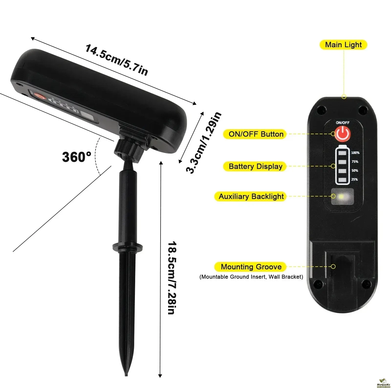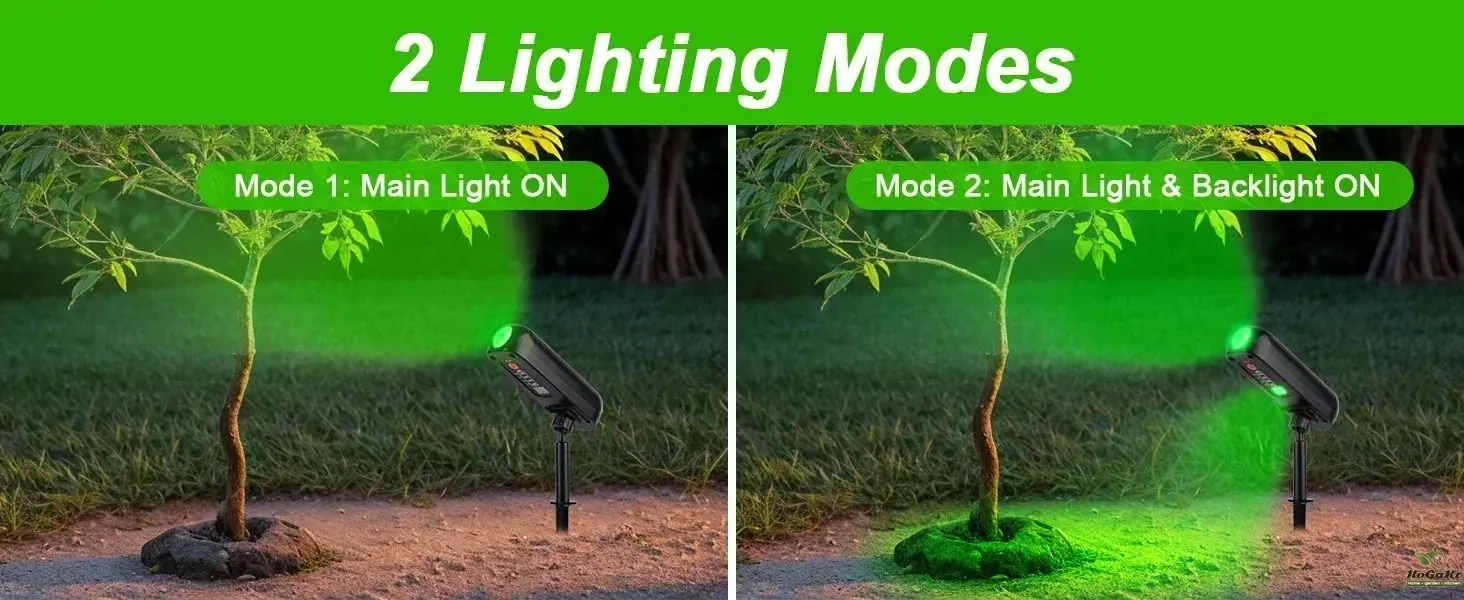 【2 Lighting Modes】The solar spotlights for outside with 2 lighting modes. ①Mode 1: Main Light Light Up. ② Mode 2: Main Light & Backlight Light Up. This solar tree light has a battery display, allow you to check the power usage of the solar light.