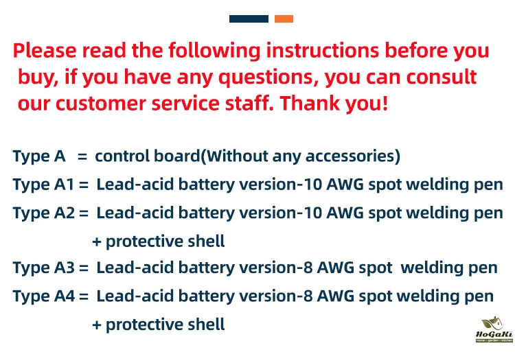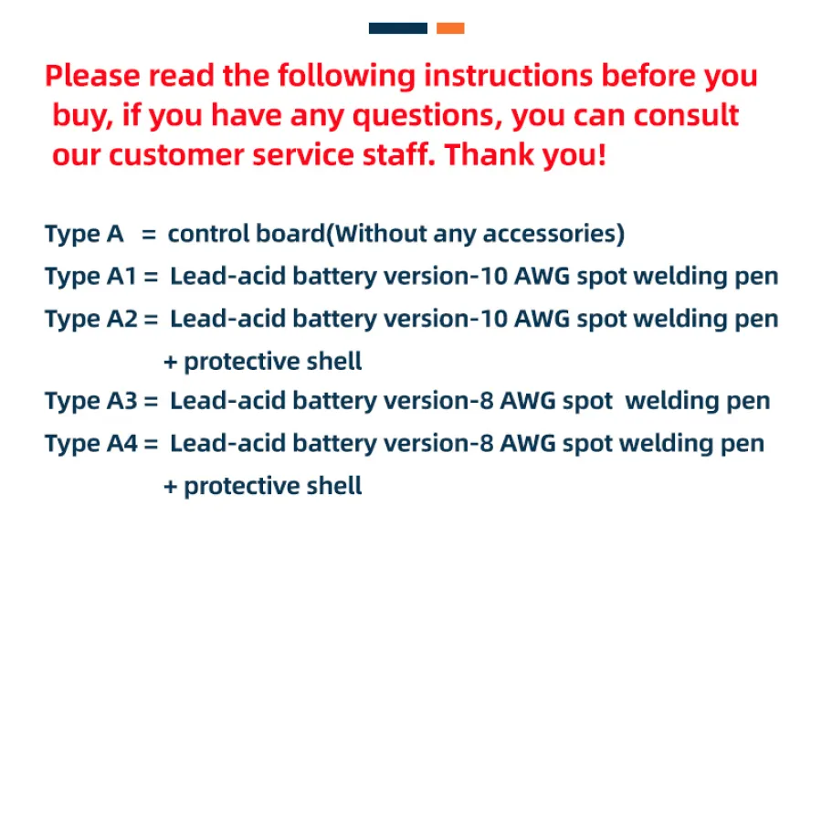 Type A4 = Lead-acid battery version - 8 AWG spot welding pen + protective shell