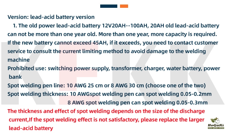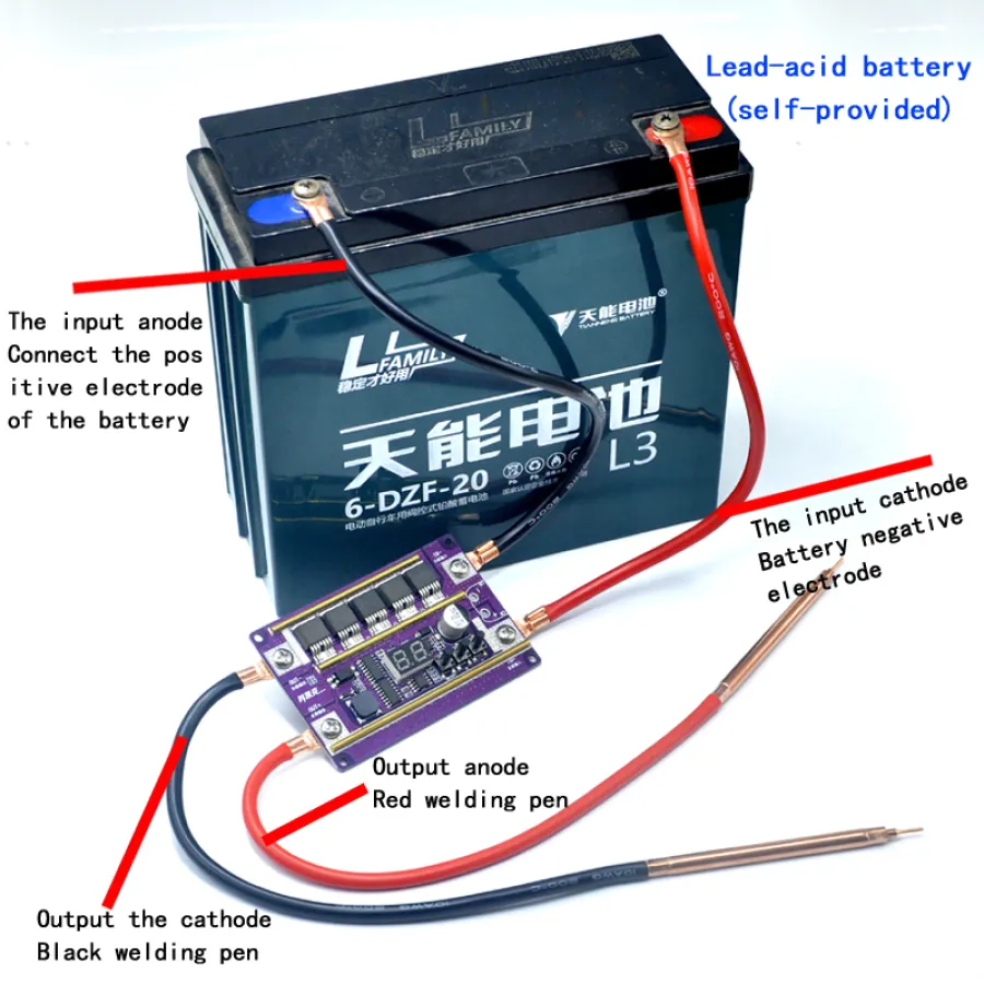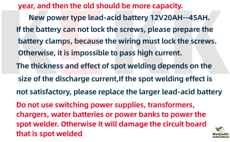 If the spot welding effect is not satisfactory, please replace the larger lead-acid battery
