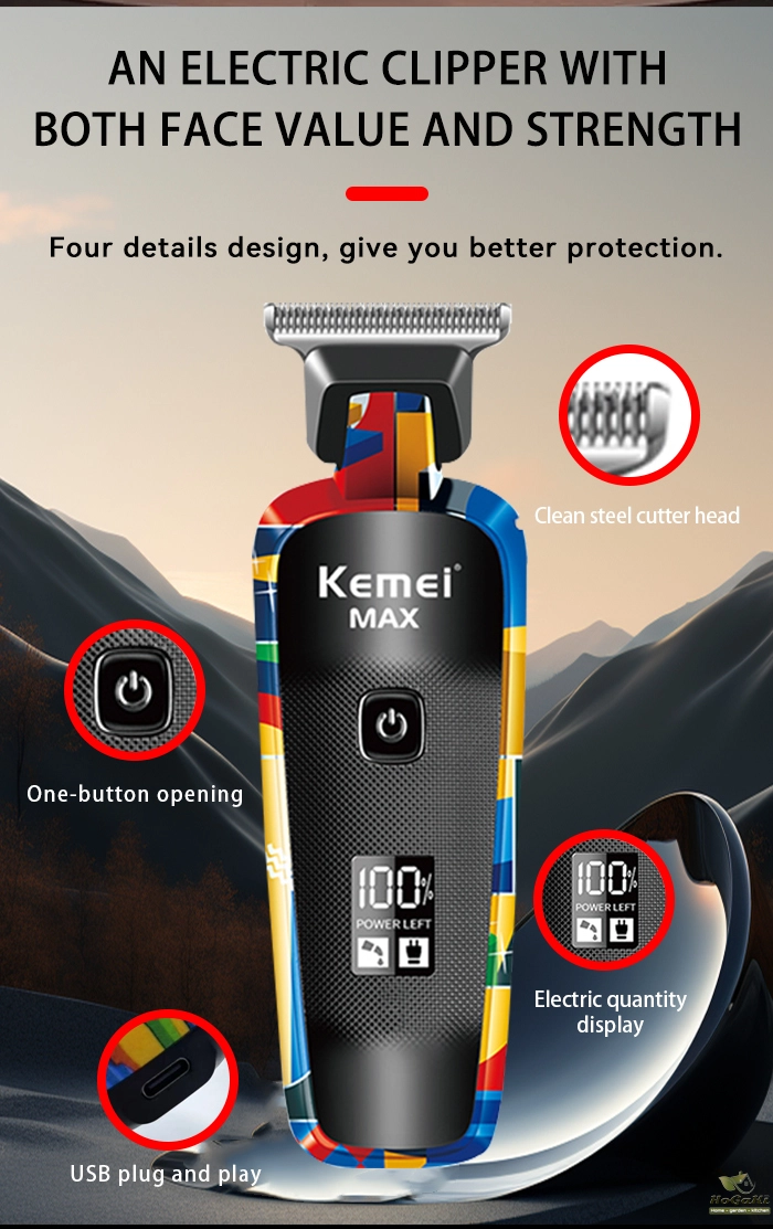 Kemei KM-1071 Electric Hair Clipper UBS Rechargeable Cordless Beard Trimmer Men Powerful Electric Hair Clipper Trimming Tool