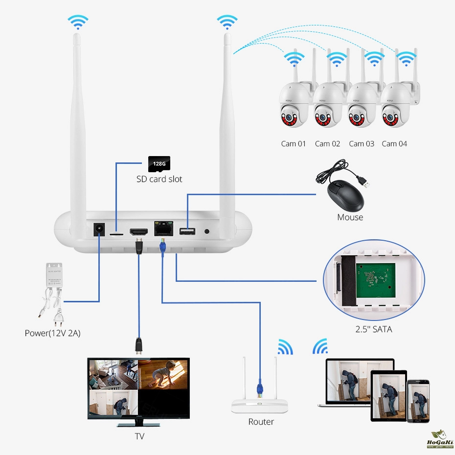 KERUI 2K 4MP Outdoor Full HD Security WIFI IP Camera Icsee 2.5inch HDD Match For Wireless MINI 8CH NVR System Host