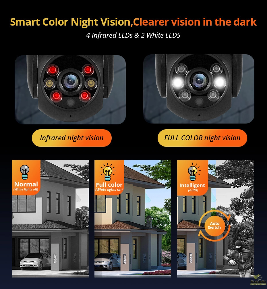 Built-in IR-CUT core module,IR light and White LED light free switching,better surveillance effect,no color cast and no image distortion.Enhance color purity of the day,and night vision effect.
