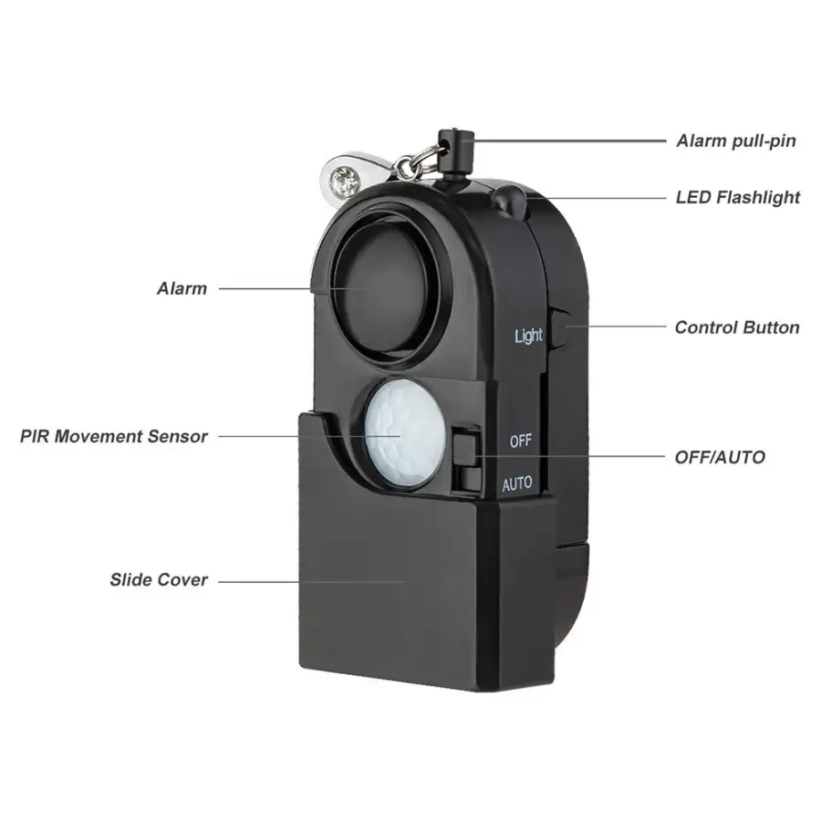 PORTABLE MOTION DETECTOR: Integrated PIR motion sensor can sense boby movement within three meters ( ten feets) with horizontal detection angel of 30°. With this super function, you can put it in your front door / bedroom / yard / living room / window to sense breaking in, especially while you are travelling. This is a really useful gadget to protect you.