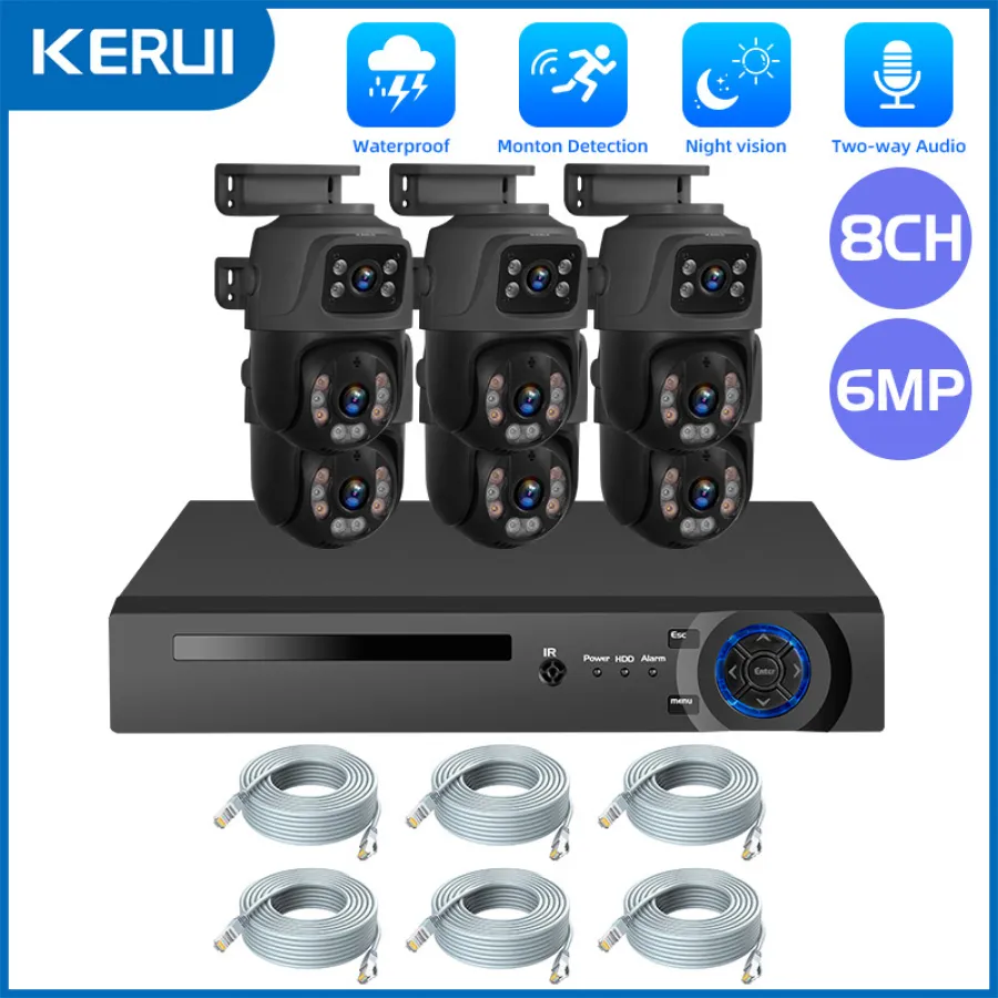 KERUI Waterproof 6MP HD POE Surveillance Camera System Dual Lens PTZ WIFI IP Home Security 4CH 8CH POE NVR Video H.265 CCTV Kit