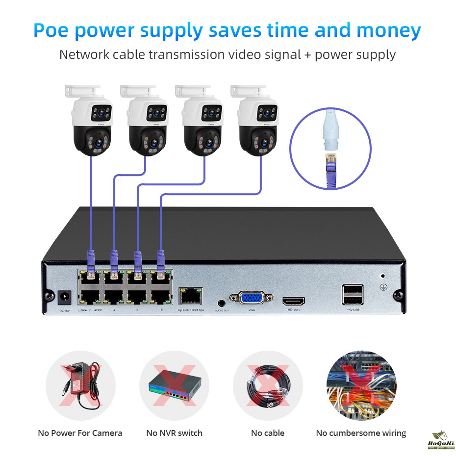 3. Simple Maintenance: each camera is connected by a network cable, and there is no need to maintain the power supply, power cord, power socket, etc. in the later stage;