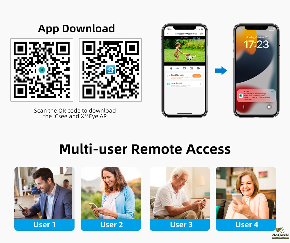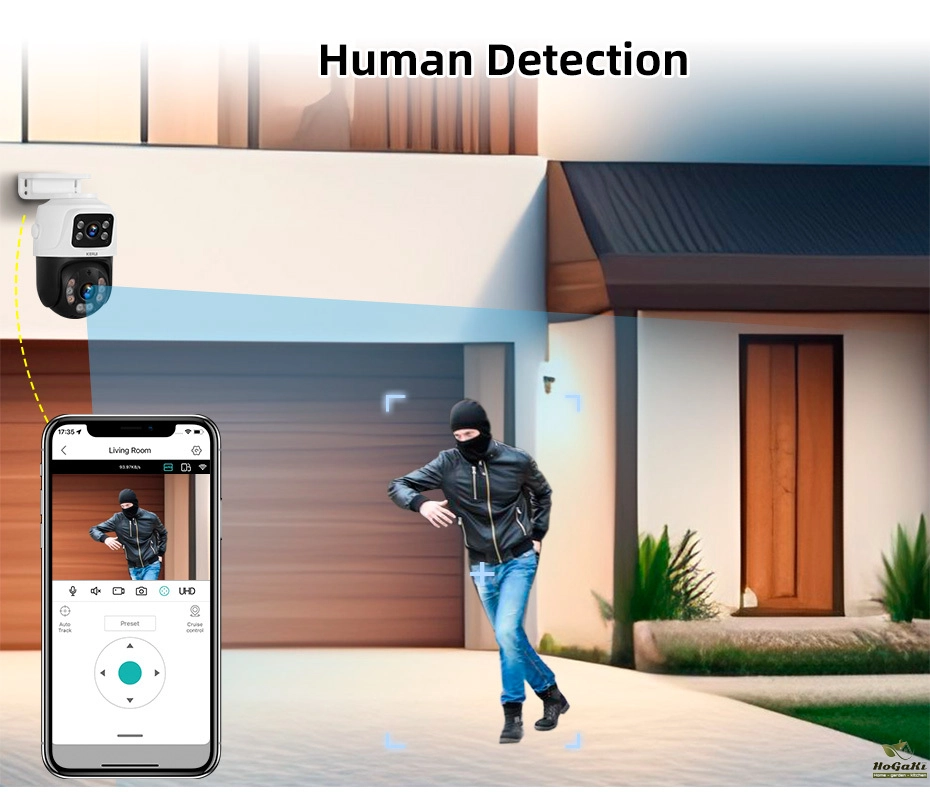 Quickly finds human targets and immediately sends a notification to your phone, letting you see what happens anywhere.