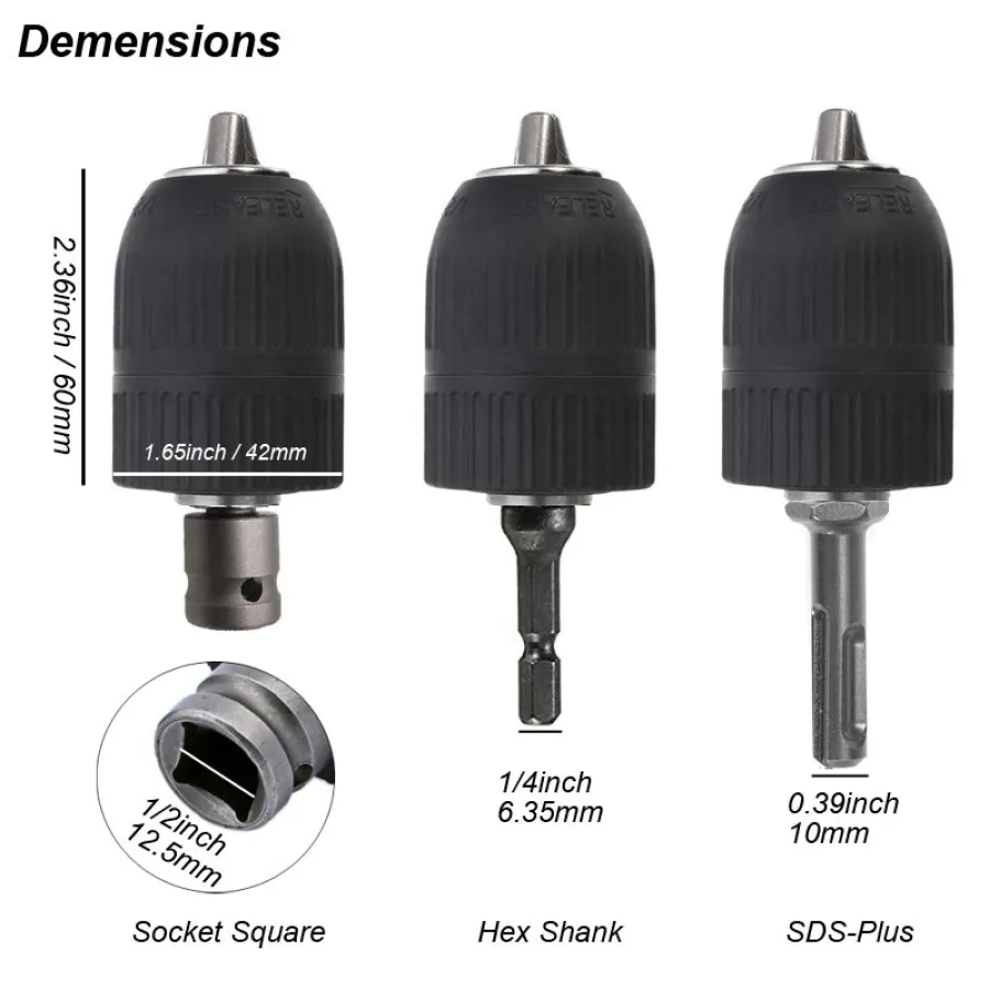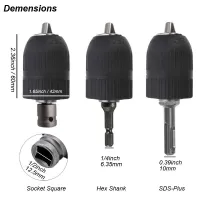 2-13mm Converter 1/2"-20UNF Keyless Drill Chuck Thread Quick Change Adapter SDS 1/4" Hex Impact Driver Wrench Drill Bit AdapterFeatures: