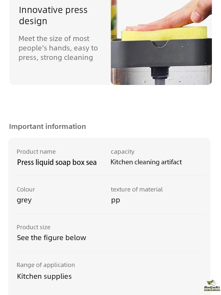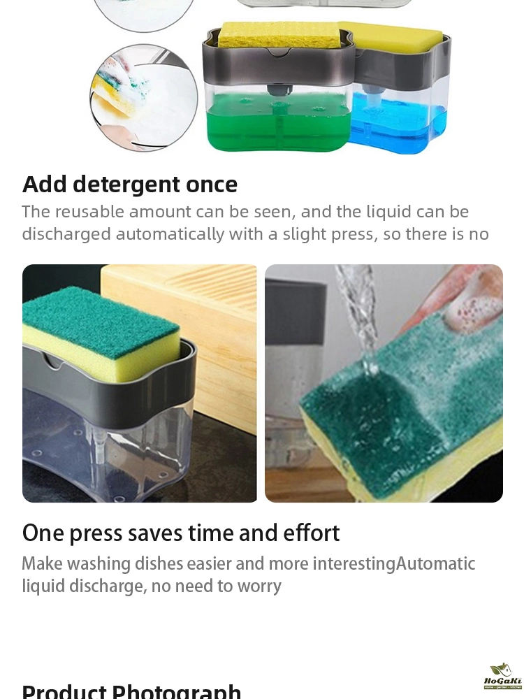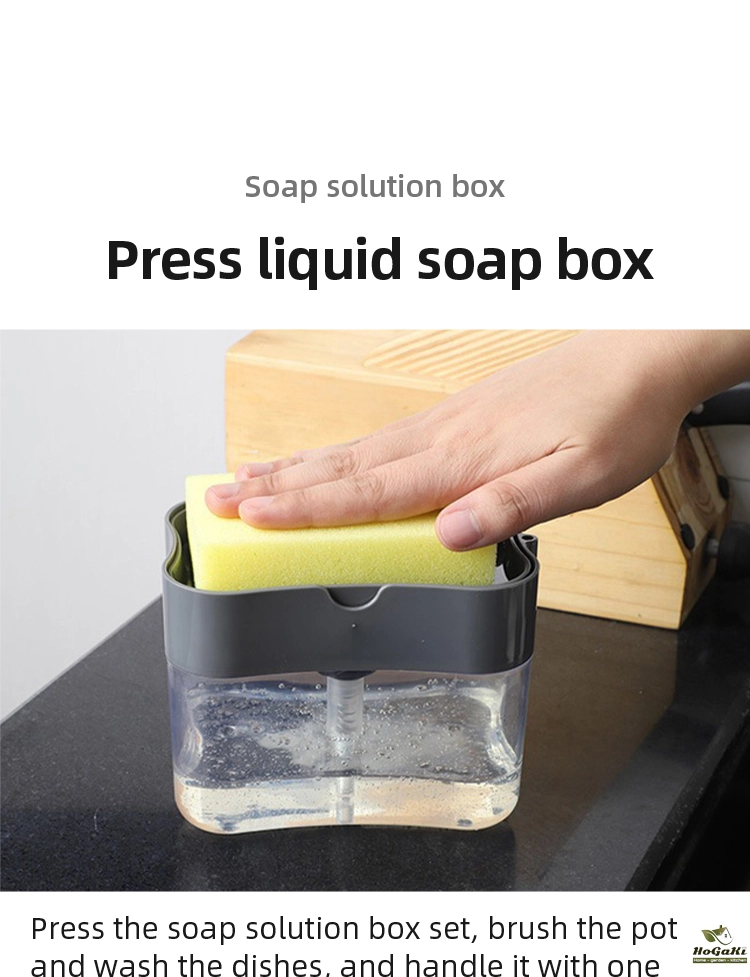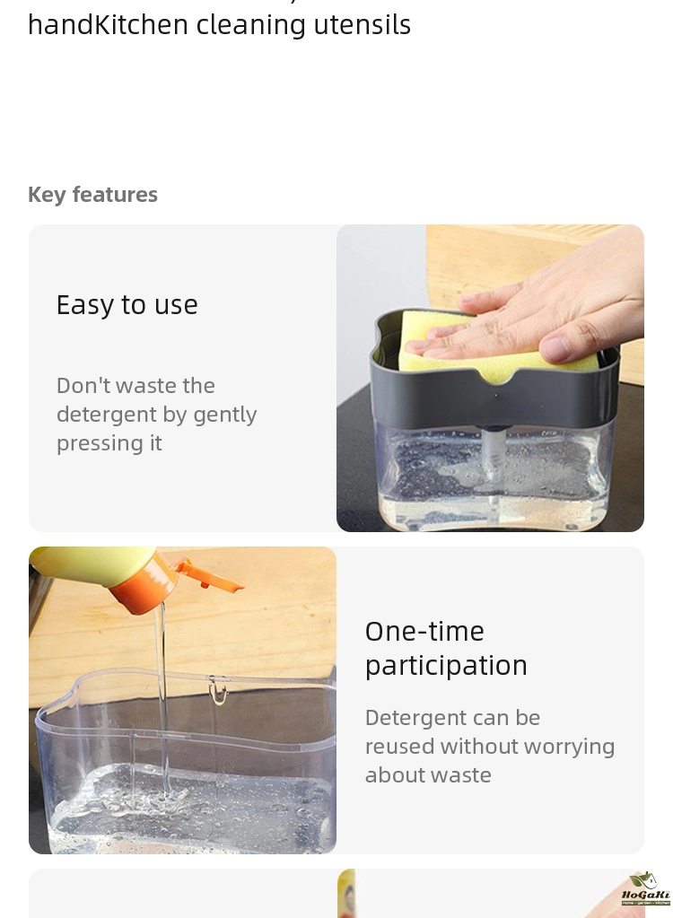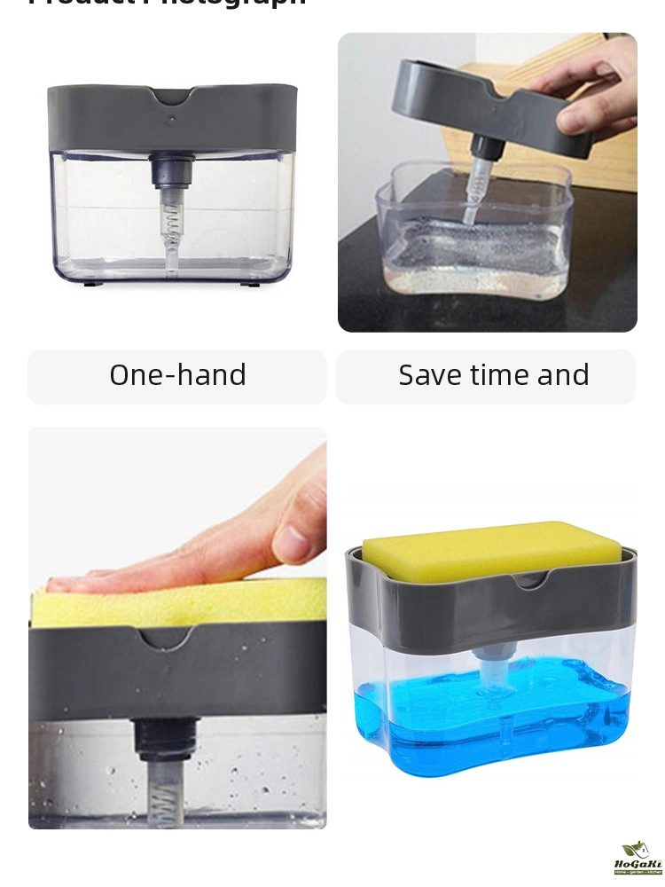 Method: Manually press and gently press the top plate to distribute soap directly onto the sponge. It will sprinkle proper amount of dishwashing soap on the sponge