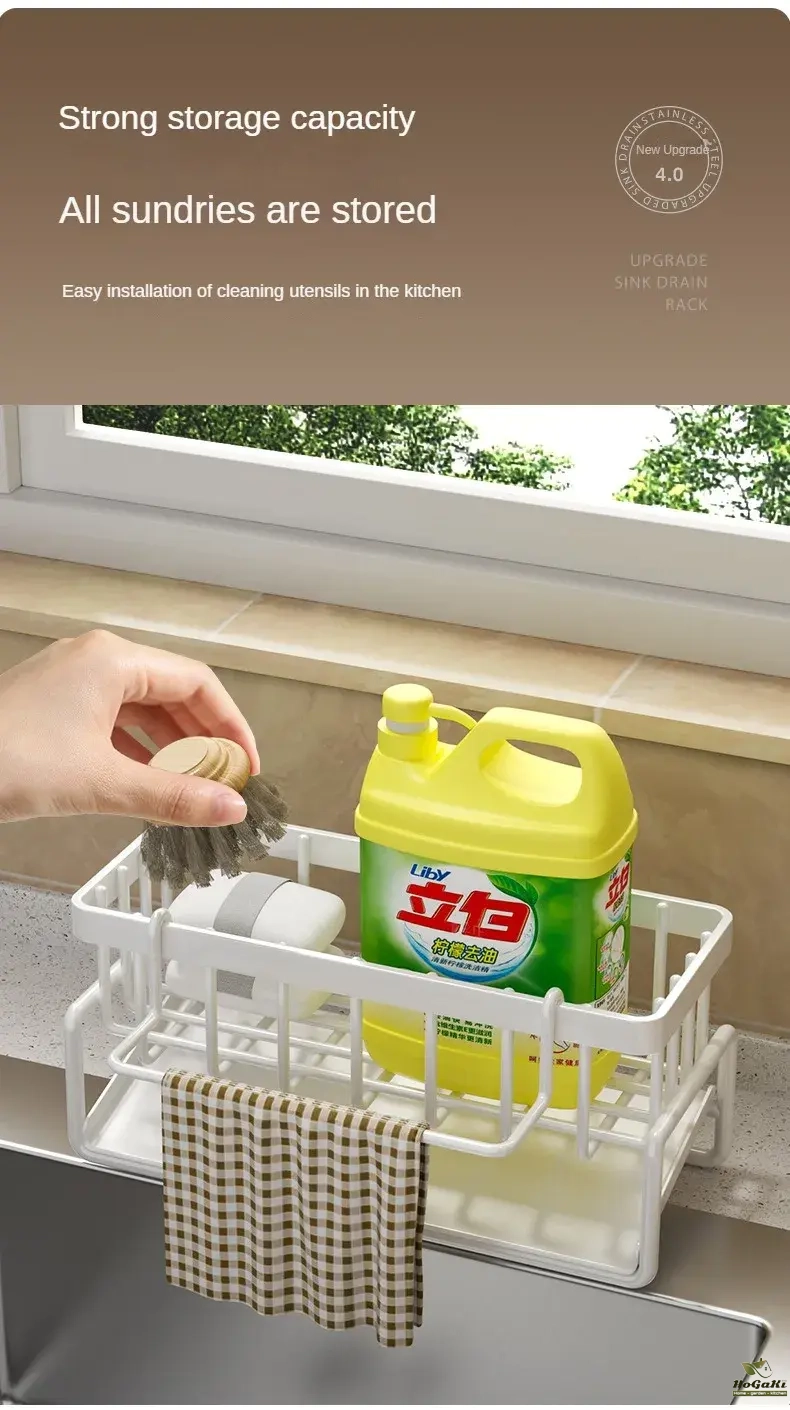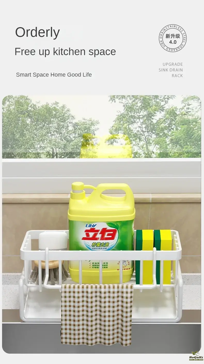 Stainless Steel Sink Tray Drainer Rack Kitchen Sink Sponge Holders Self Adhesive Hook Storage Holder Kitchen Wire Rag Organizer