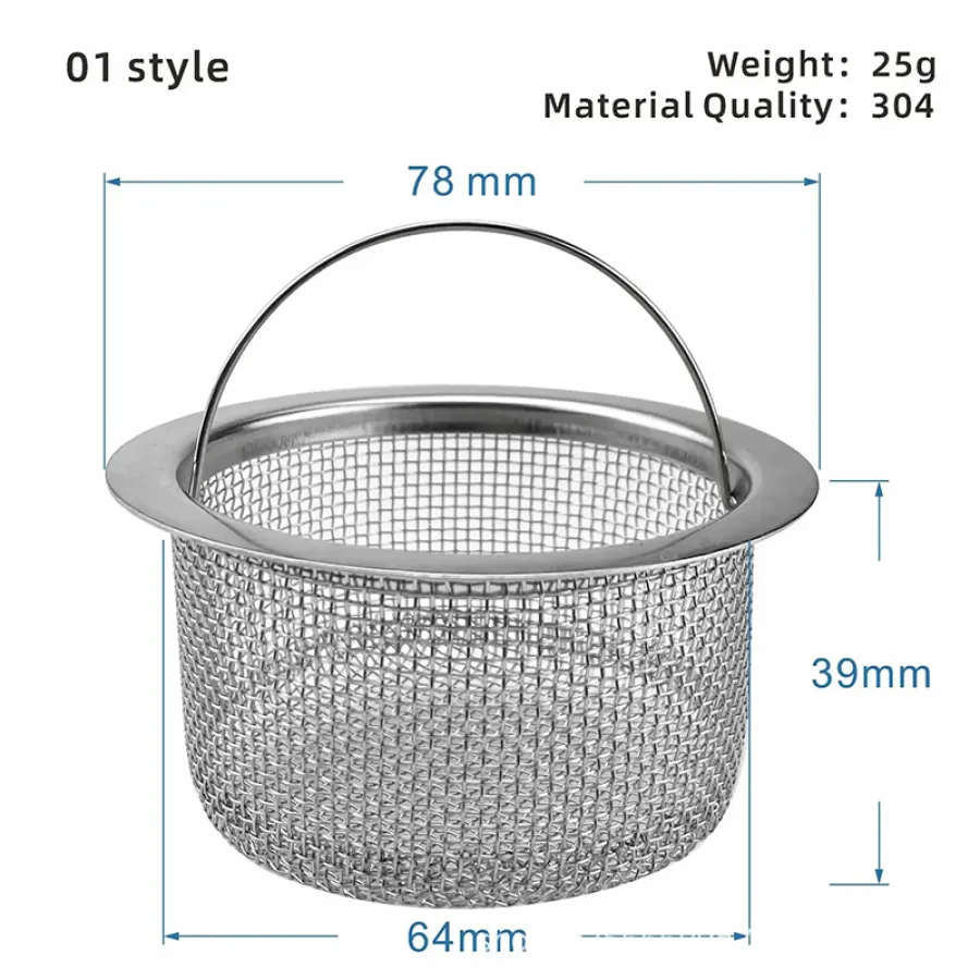 Kitchen Sink Filter Stainless Steel Mesh Sink Strainer Filter Sewer Mesh Strainers Bathroom Sink Strainer Drain Hole Filter Trap