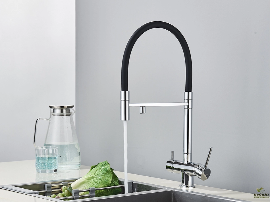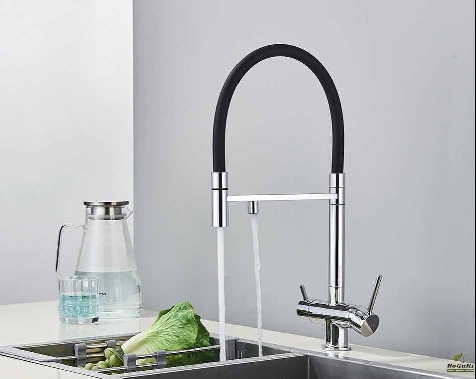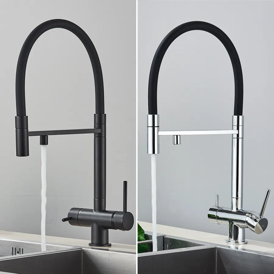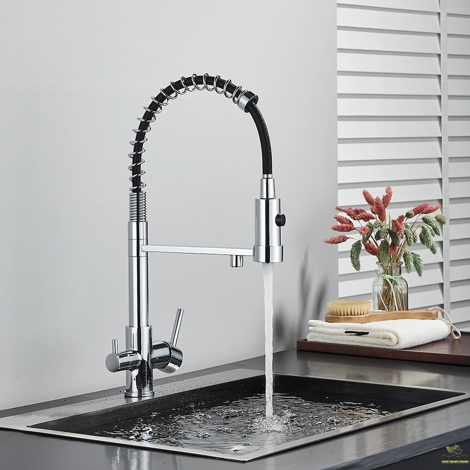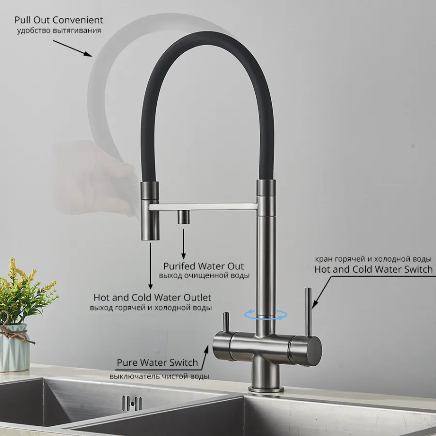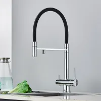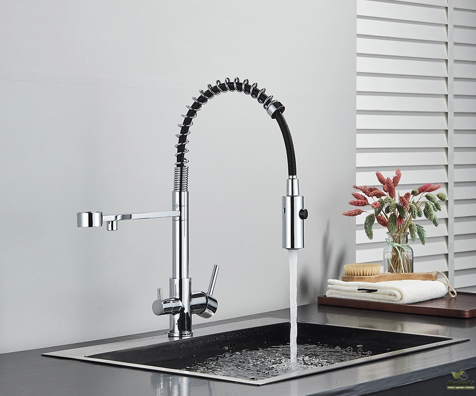 Chrome Brass Pure Water Filter Kitchen Faucet Deck Mounted Dual Handles Purified Water Outlet Kitchen Mixer Tap