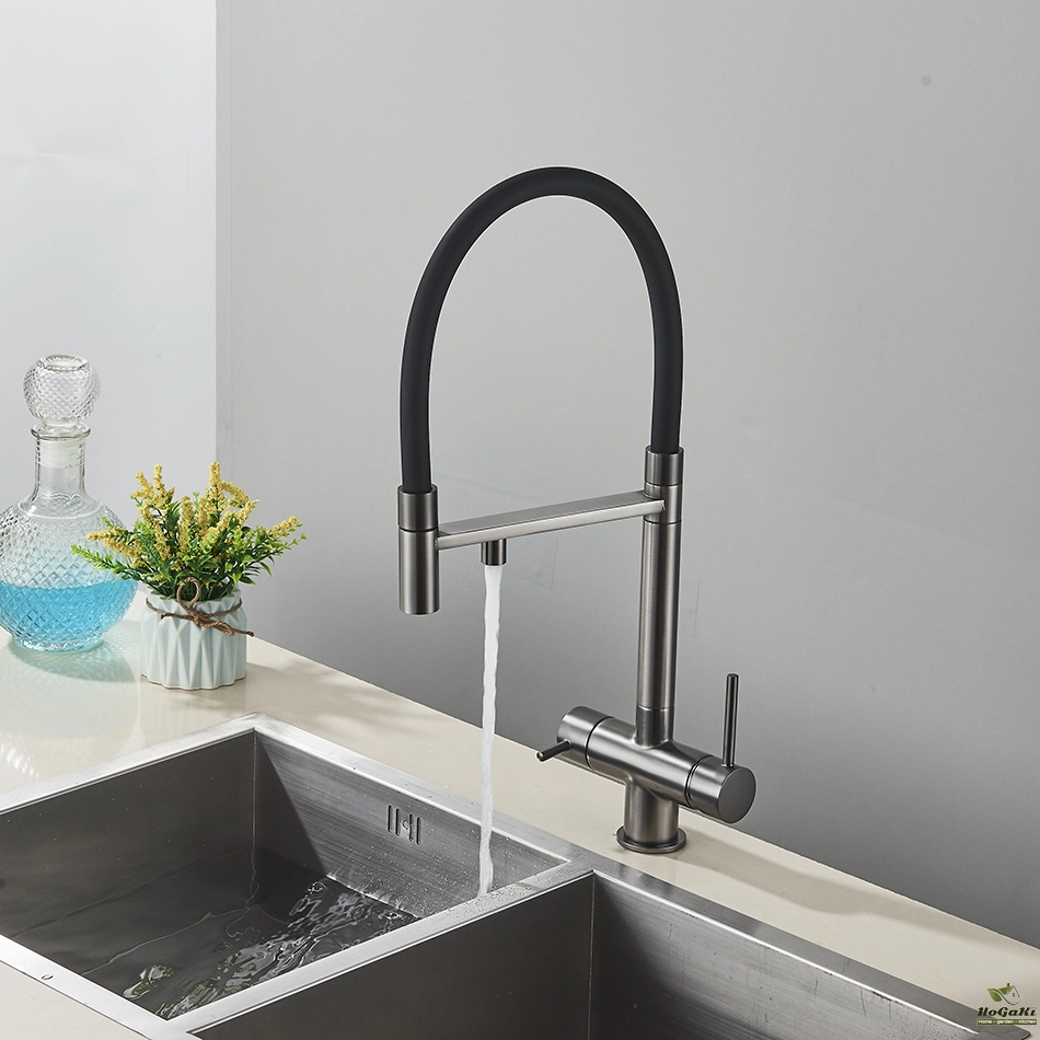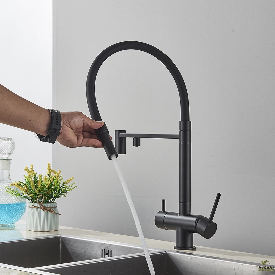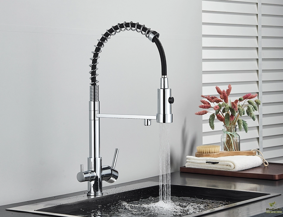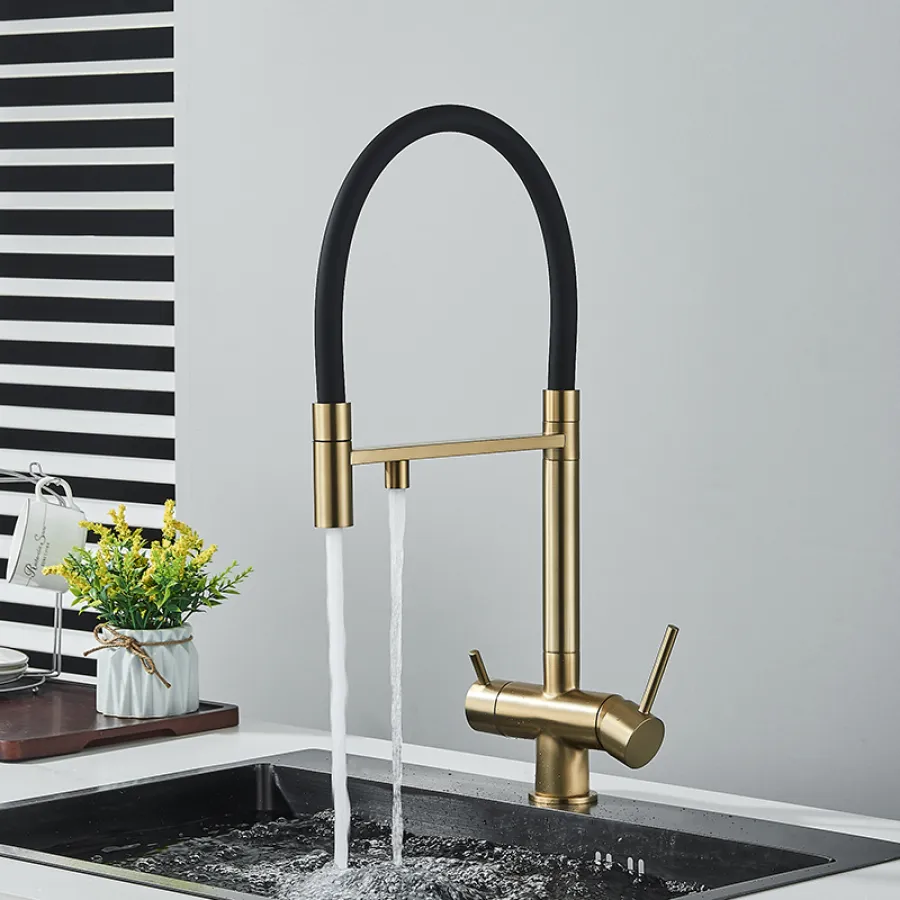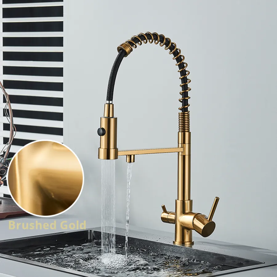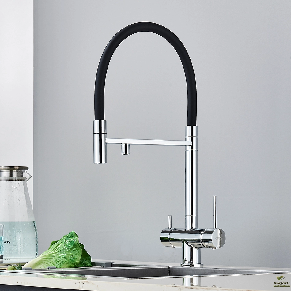 Chrome Brass Pure Water Filter Kitchen Faucet Deck Mounted Dual Handles Purified Water Outlet Kitchen Mixer Tap