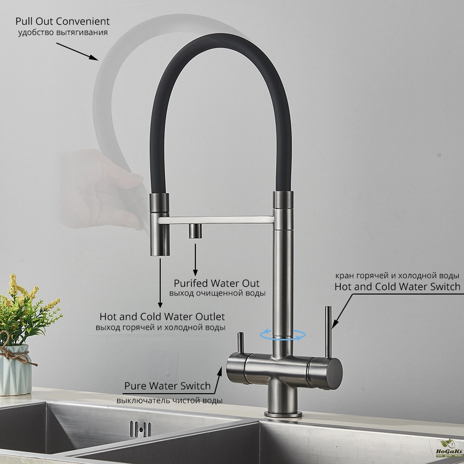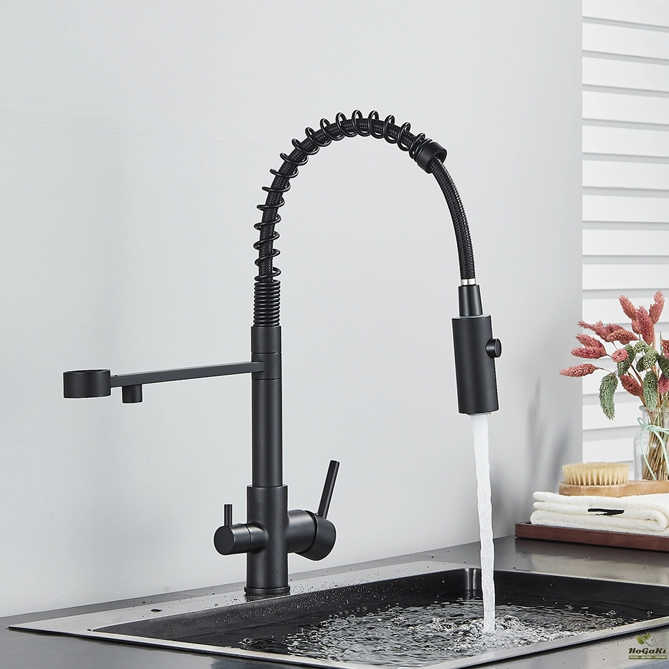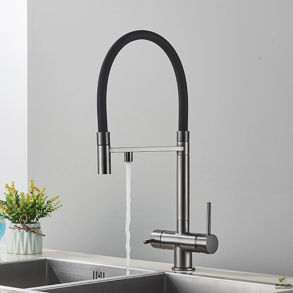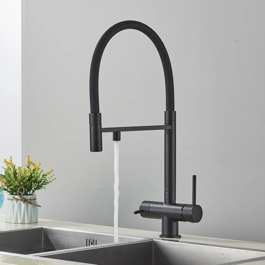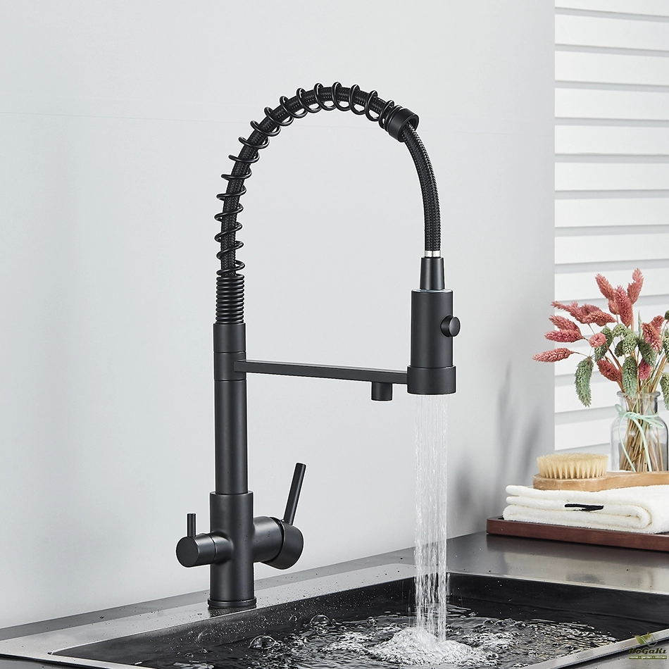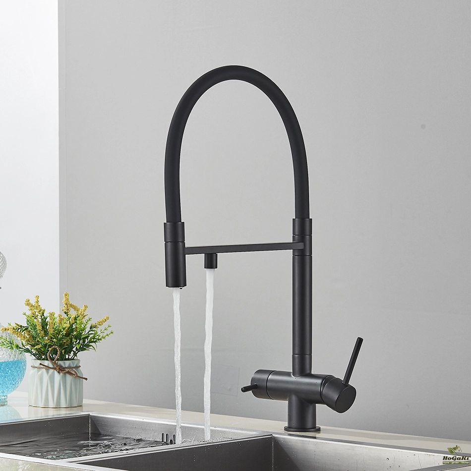Chrome Brass Pure Water Filter Kitchen Faucet Deck Mounted Dual Handles Purified Water Outlet Kitchen Mixer Tap