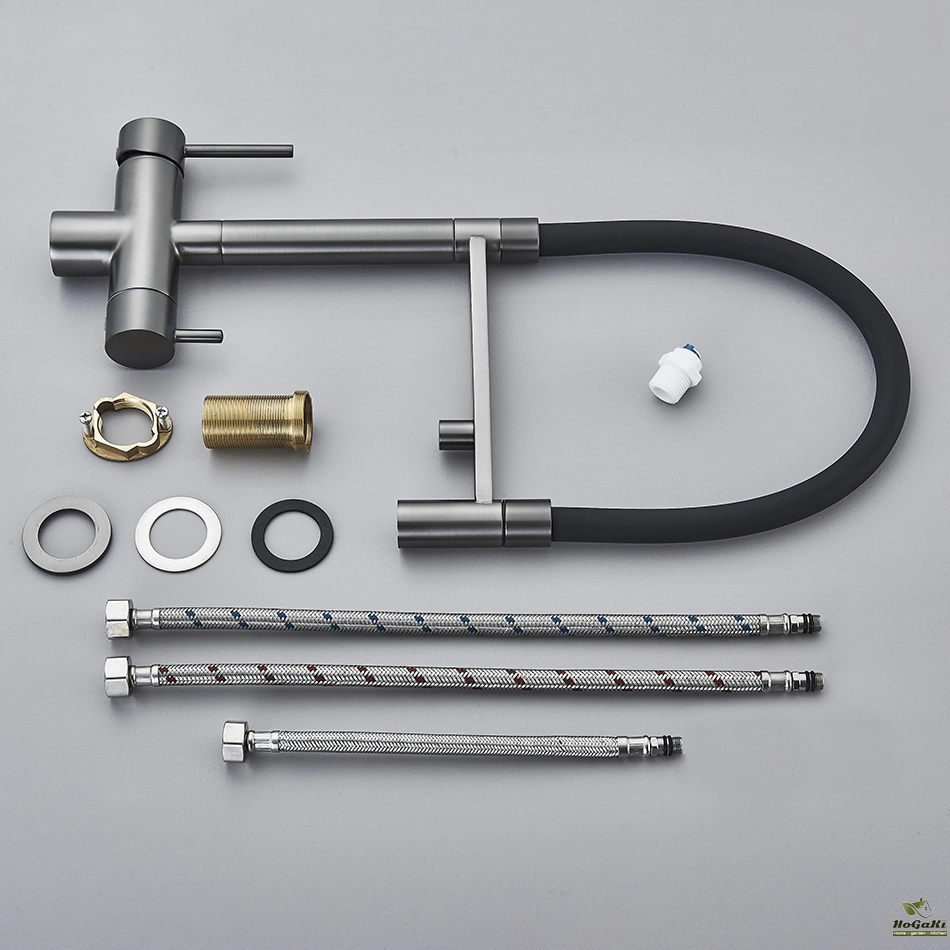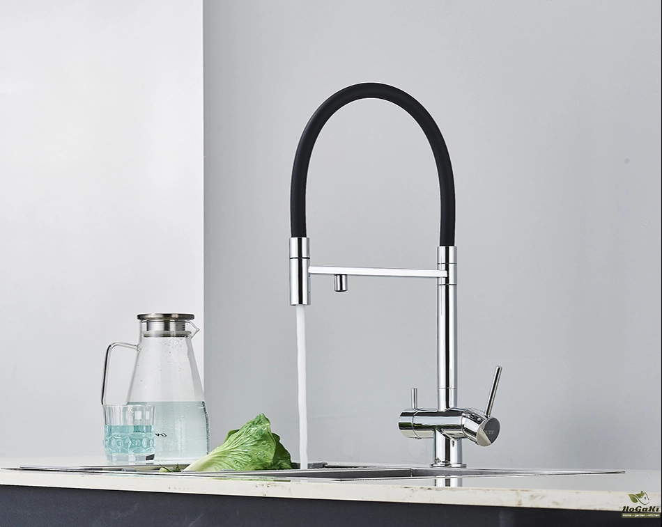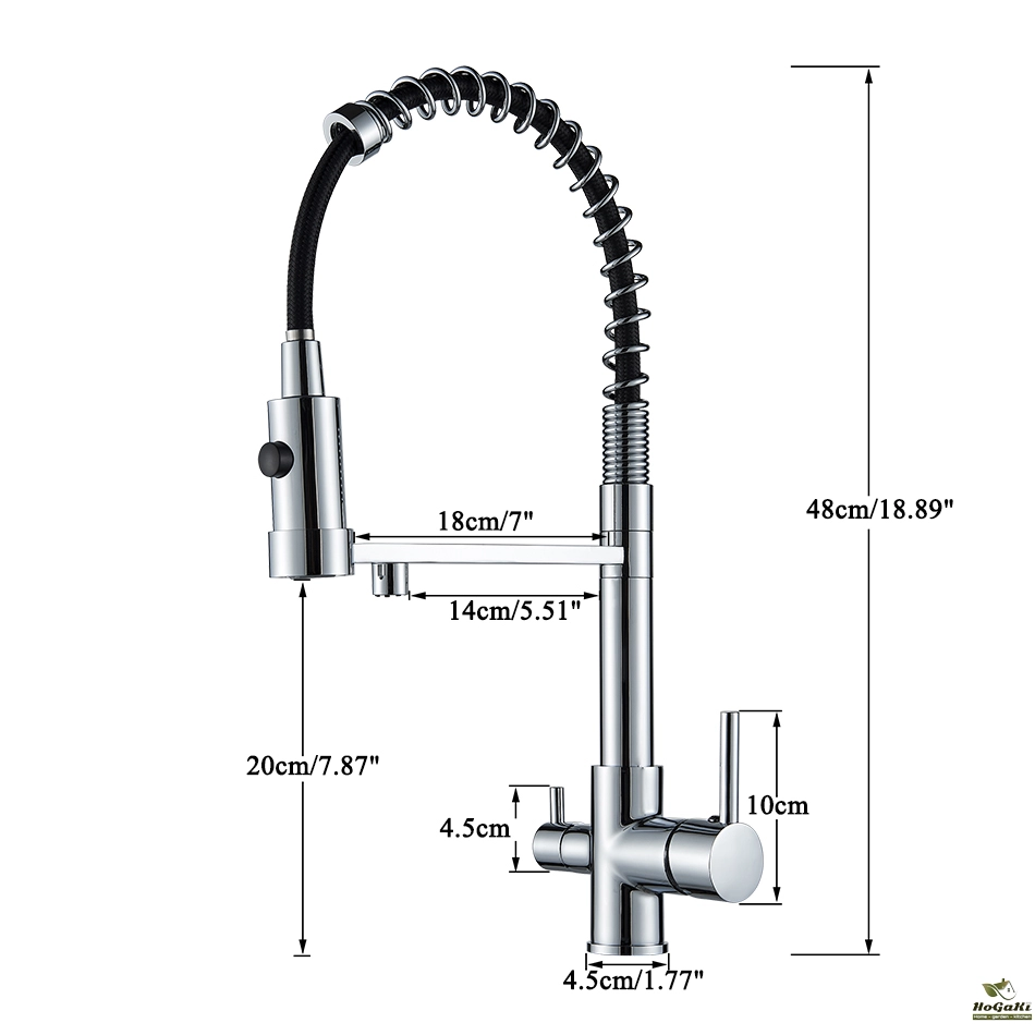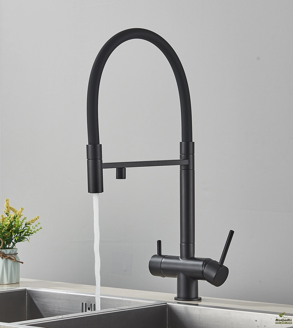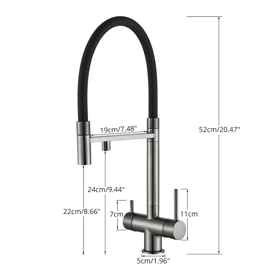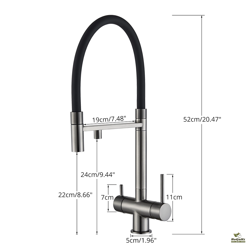Chrome Brass Pure Water Filter Kitchen Faucet Deck Mounted Dual Handles Purified Water Outlet Kitchen Mixer Tap
