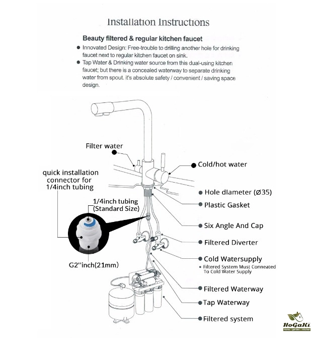 ULA 1/4"Kitchen Filtered Faucet Stainless Steel Direct Purifier Direct Drinking Tap Single Cold Water Sink Faucet Black/Brushed