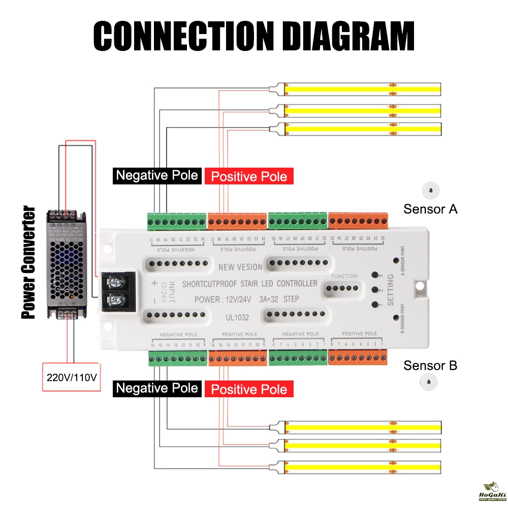 The input port is divided into positive and negative poles. Do not connect them reversely. Do Switch off the power before you operate the light connection. After the operation is completed, check the installation line and the lamp connection before powering on. If the wire and the lamp are not installed according to the requirements, there may be a short circuit, resulting in abnormal control.
