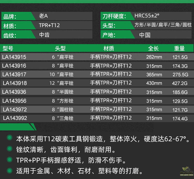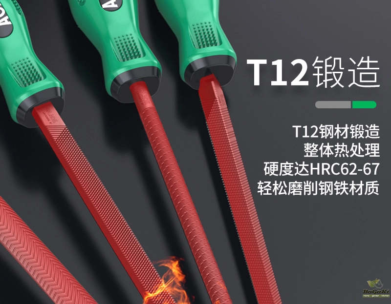 6-Piece Needle File Kit with High Temperature Quenching and Rubber Handle - Includes 6 Shapes Flat, Flat Warding, Square, Triang