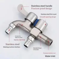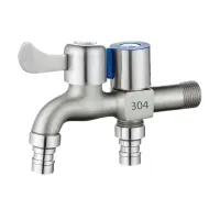 Stainless Steel Faucet Double Outlet Dual Control Water Tap One in Two Out Faucet 1/2" Bidet Faucets Bathroom Accessories