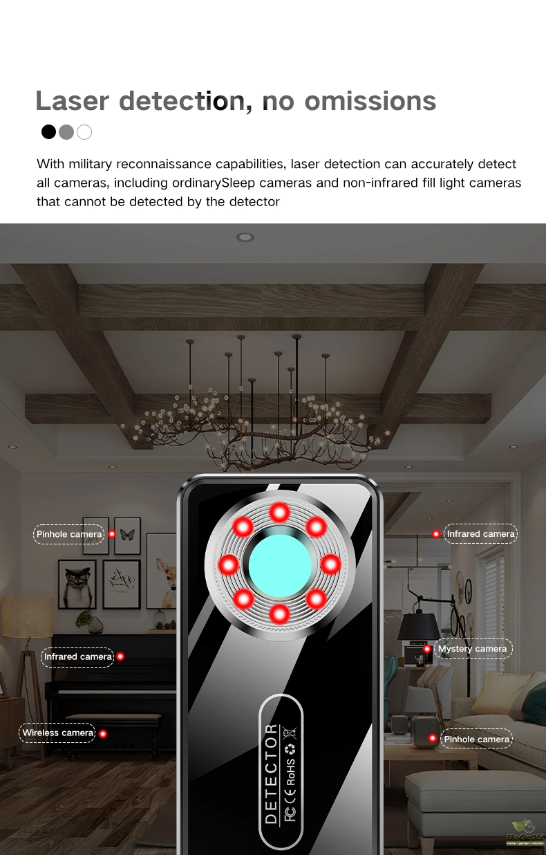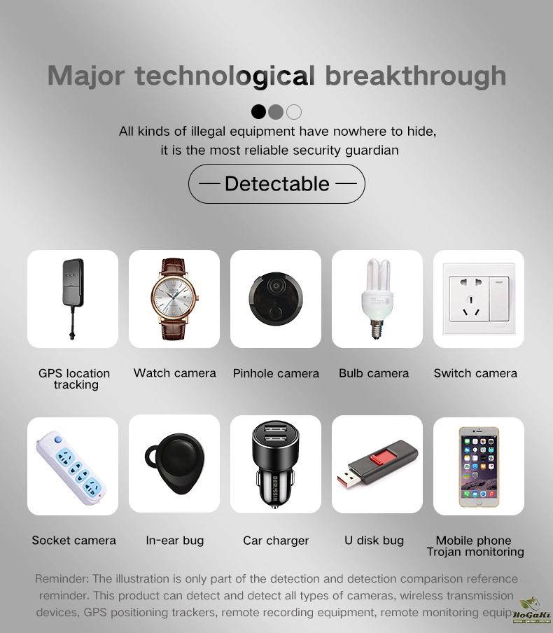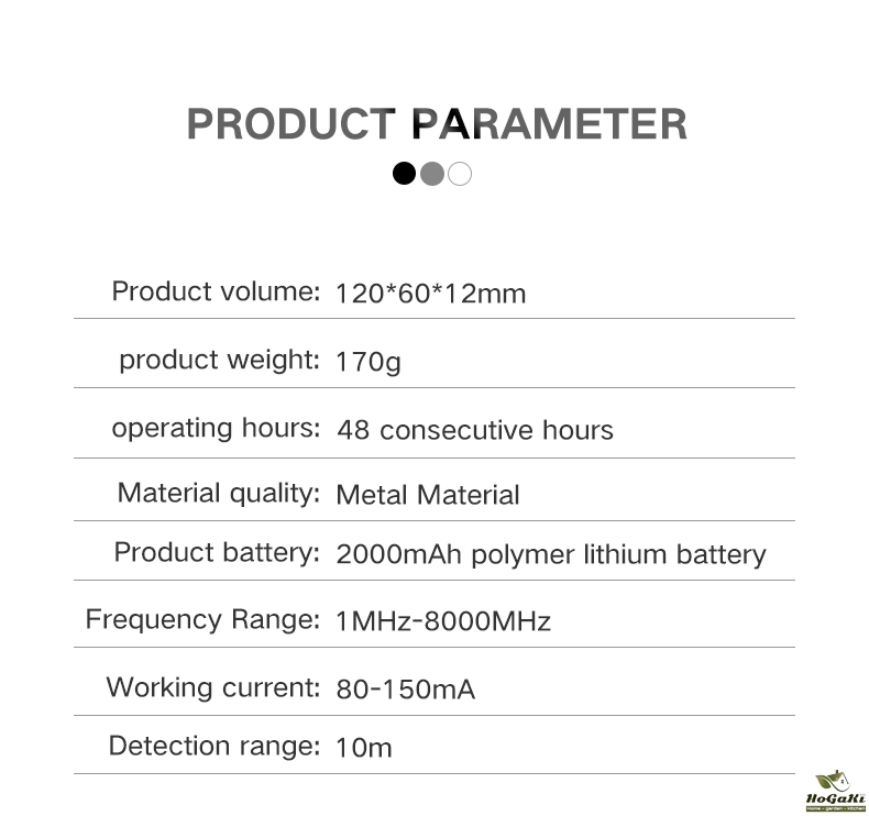 1. High-performance chips: increase the exploration range, expand the exploration frequency, and can detect spy equipment and tracking equipment between the frequencies of 1MHZ-8.0GHZ.