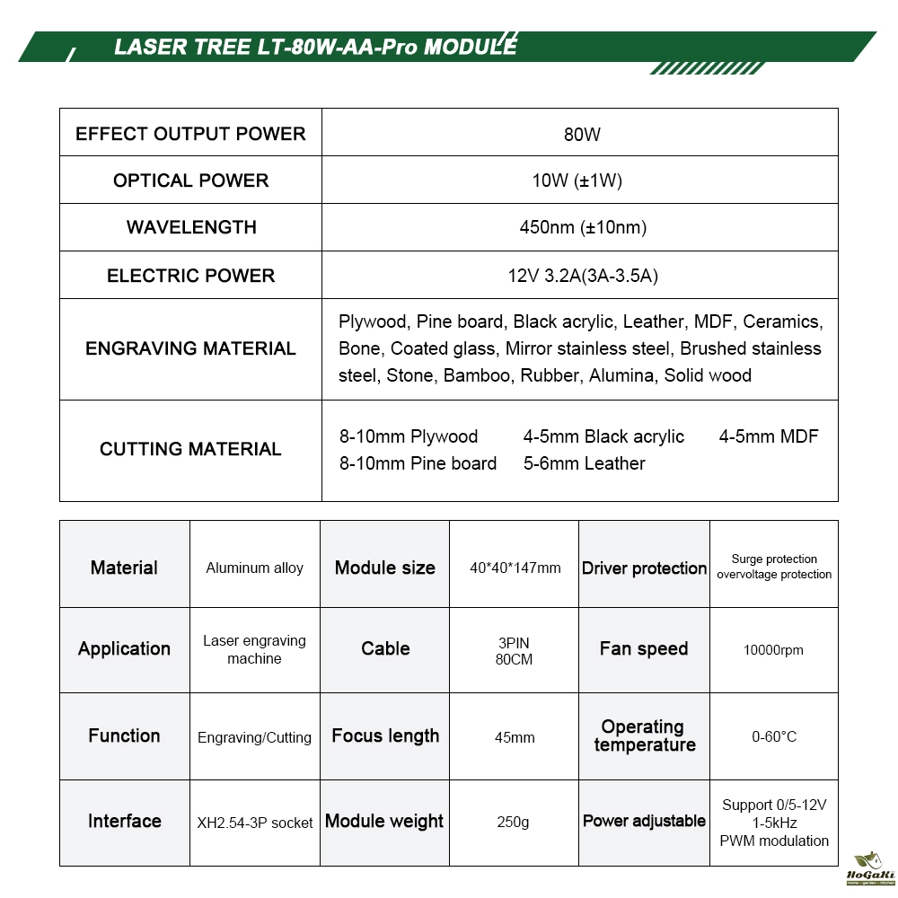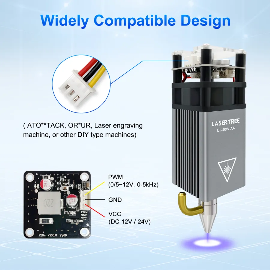 LT-80W-AA-Pro laser module can be installed on Z*aitu,O*tur,Tw* Trees,S*ulpful9, Xtool, A*omstack and other models of DIY laser engraving machines.