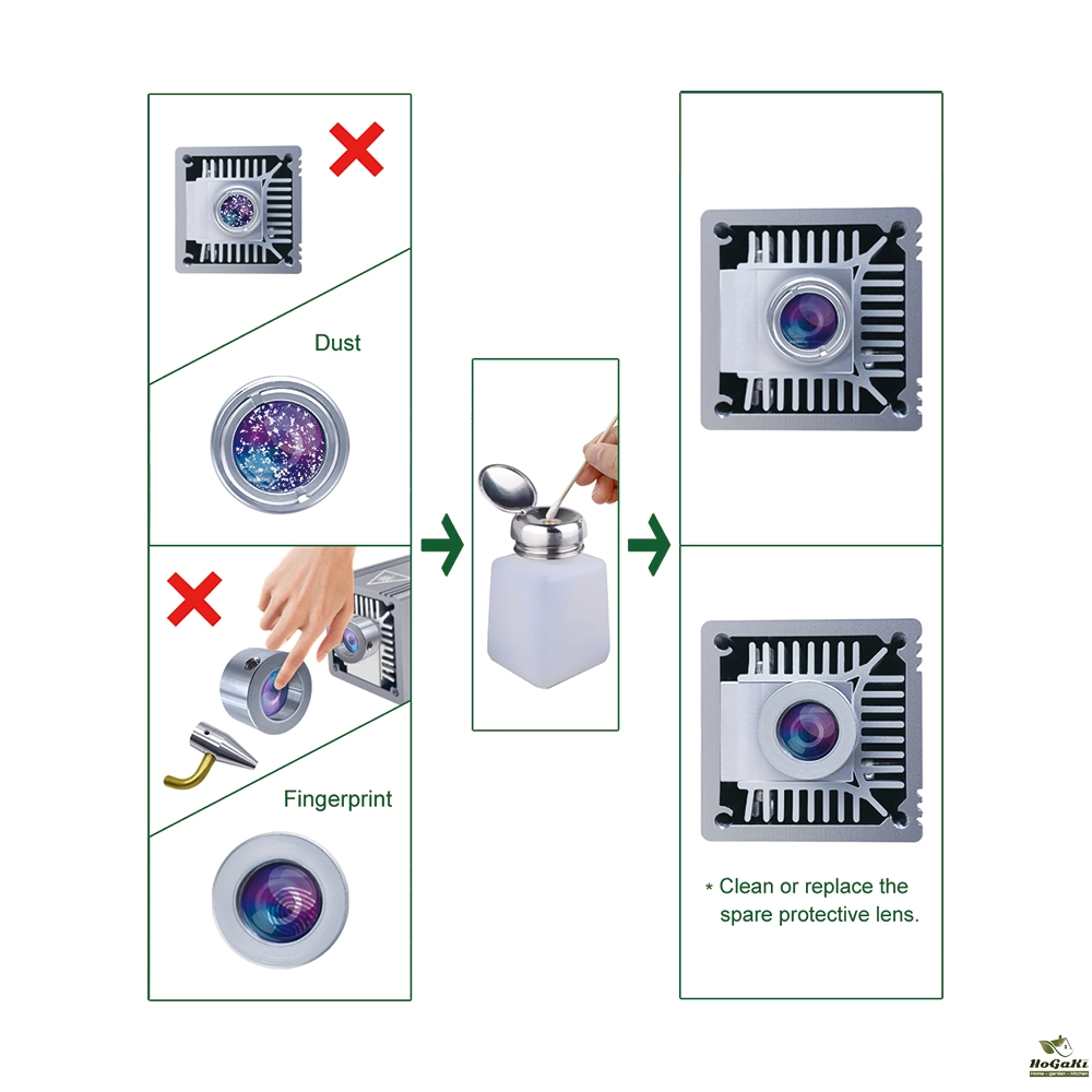When the laser module is not used for a long time, please ensure that the lens is not polluted by dust.