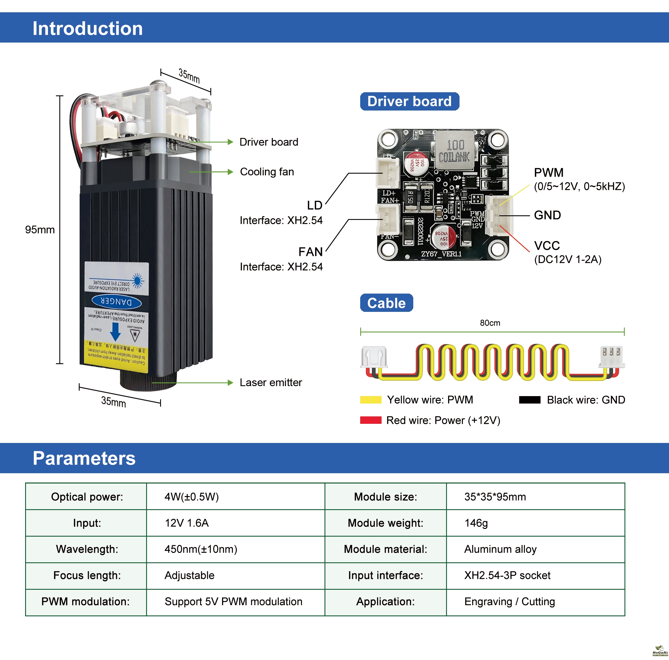LASER TREE 10W 5W 4W Laser Module, 450nm TTL Blue Light Laser Head for Laser Engraving Wood DIY Creation Tool
