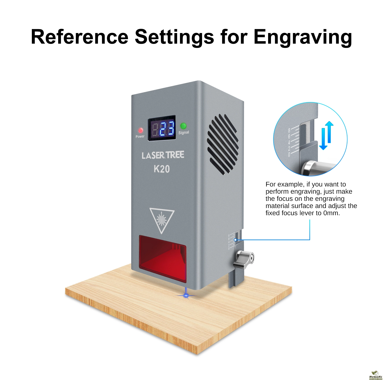 b. The focal length of engraving is 20mm, which is more suitable for engraving wood (cannot engrave stainless steel)